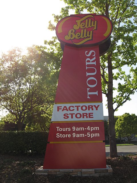 Due to a quick side trip to see the monuments representing the riots on campus, we barely made it in time for our next stop—a tour of the Jelly Belly factory just north of town. We were given hats to wear and the front desk girl caught us up to the very last tour of the day so we could finish it out, receive our free Jelly Belly beans and visit the gift shop for some treats to take on the road. There were some brand-new flavors I hadn’t heard before, and Brian bought a game where disgusting flavored beans are mixed with regular beans and it’s just luck of the draw which you consume. Can’t wait to play that with the family when we return home!