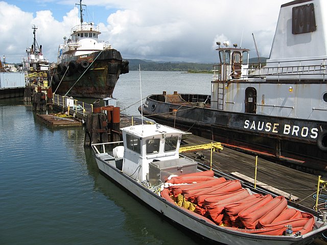We met with a break in the clouds around lunch when we stopped in Coos Bay for some more seafood. We walked along the water near the train tracks taking pictures of some of the old boats you could walk around.