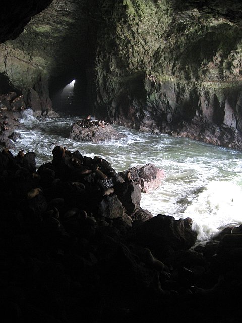 We found another small lighthouse to explore and then I napped as Brian drove us north to the sea lion caves—another tourist trap I thoroughly enjoyed! We took a long elevator ride way down to the cave and then walked around to watch the sea lions wrestle for places to sit up on the rocks. It was funny watching them get rushed in with each new wave and then try to climb up onto a rock before getting knocked off by the next one crashing in.
