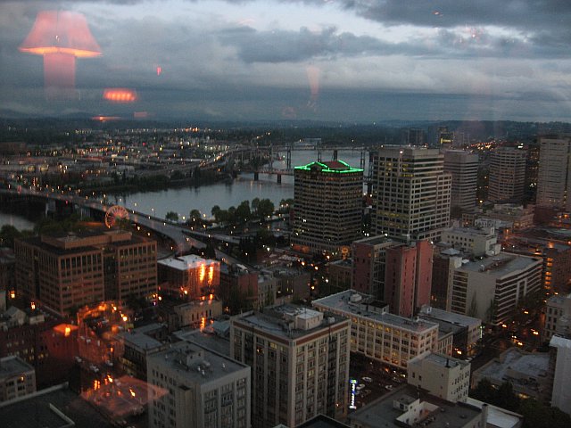 From there, we had lunch at a hamburger joint Brian found on http://www.roadsideamerica.com/ that had a monkey you could watch while you ate. LOVED it! From there, we headed into Portland without too much trouble, and once we were all settled at the hotel, we headed out to catch a train downtown.