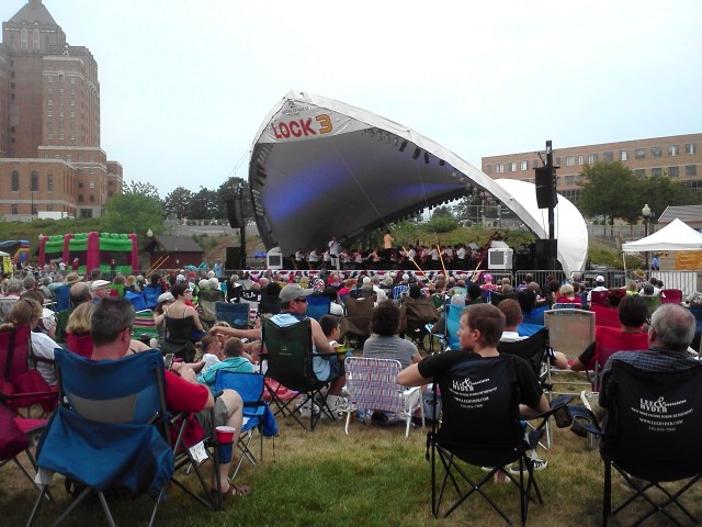 We found half a park bench open down fairly close to the stage and grabbed those seats just as the Akron Symphony Orchestra started. It was just about the best people-watching spot available as the path to the food, beer tent and restrooms was right in front of us. I ran to get us giant lemonades at one point, but otherwise we relaxed, albeit sweating profusely, and listened to the blues and jazz, which was fantastic.