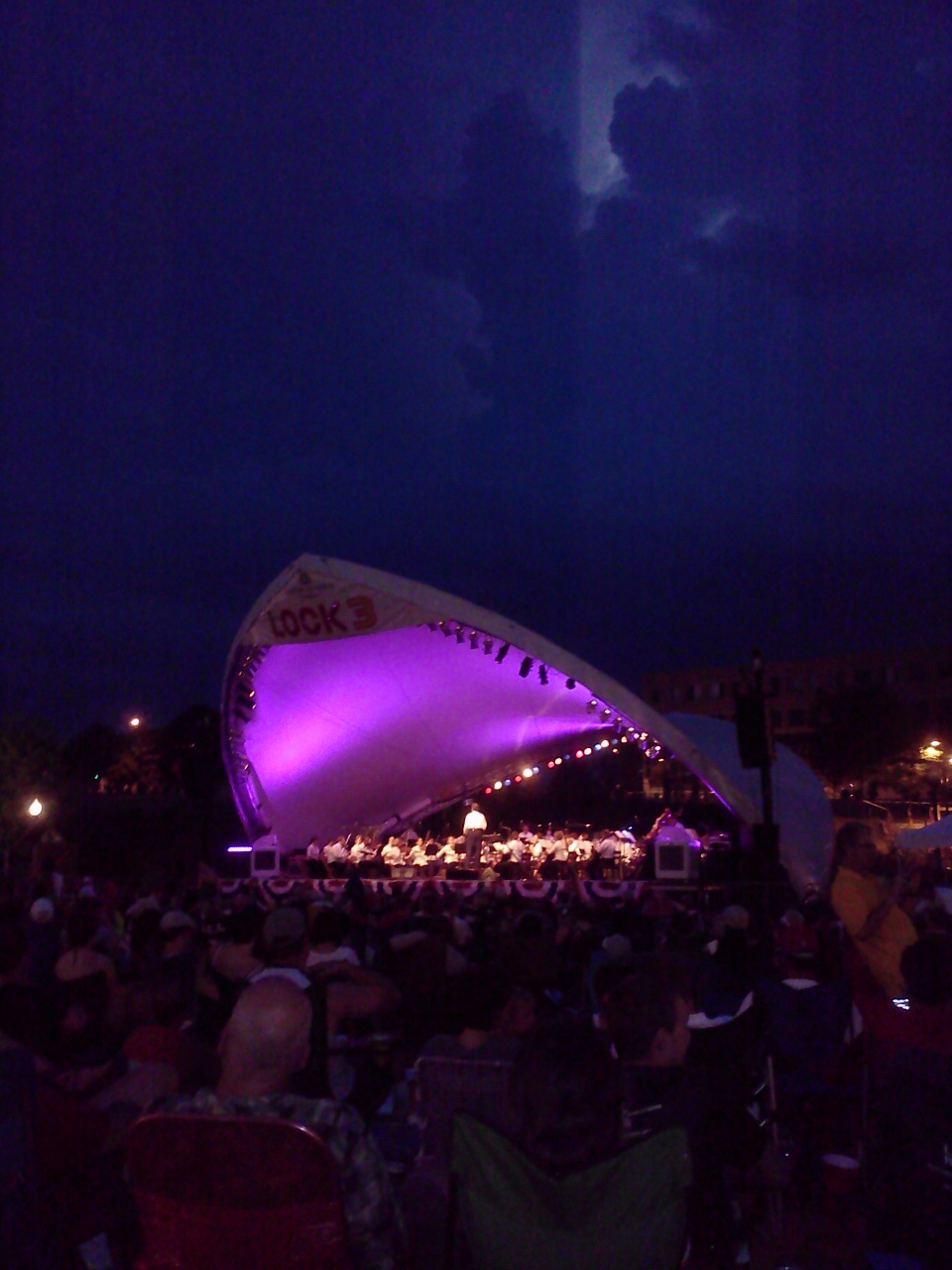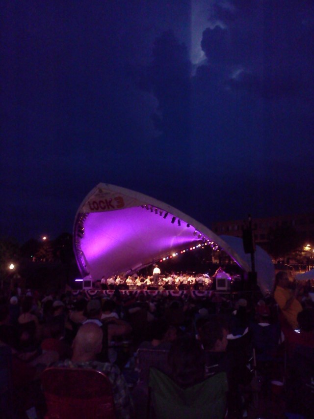 It started to lighting in the distance, but it looked like we might just make the fireworks before the rain hit so we decided to stick it out. The orchestra played a few more songs and then cleared the stage.