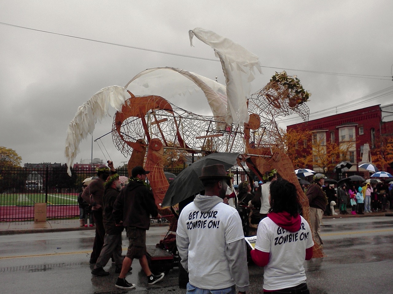 We were able to find a pseudo-legal parking spot and planted ourselves where the parade began under my tiny umbrella. We were surrounded by families as well as some unfortunate/soaked pets, and ended up having a lot of fun.