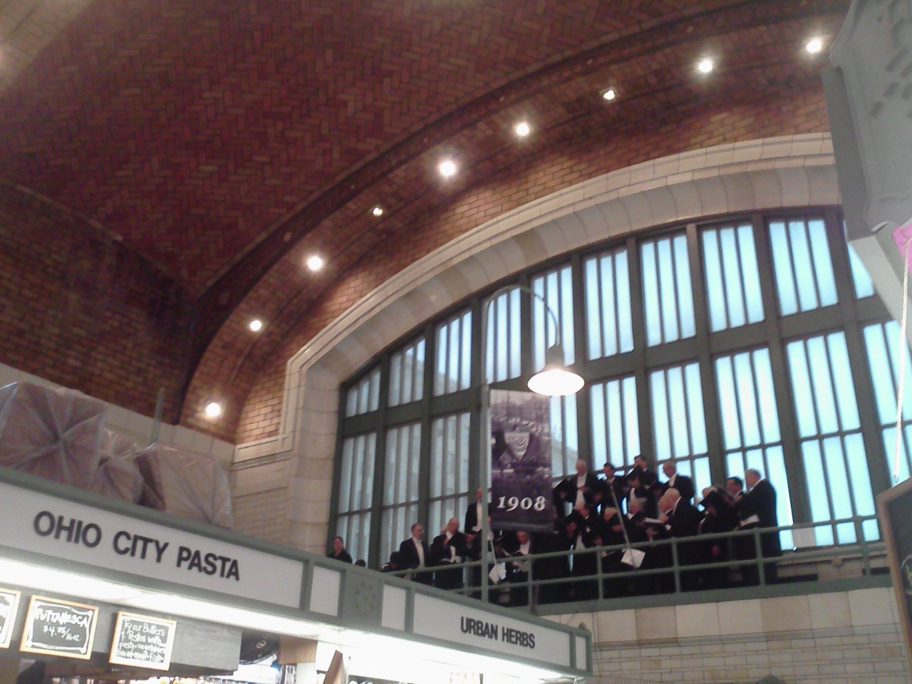When the last parade participants walked by we closed in with the crowd to follow the parade down to the West Side Market, but the parade ended a good half hour before the market was scheduled to open.
