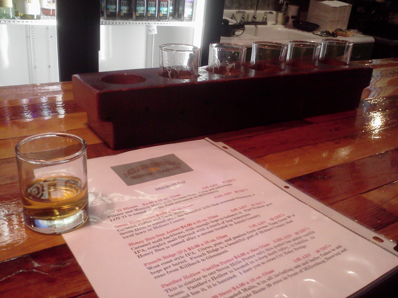 That said, I cannot believe what a tourist attraction Amish Country is/has become! It blows my mind. Thankfully, historic Millersburg is not the central destination yet. We pulled our bikes into the center of town, had no difficulty finding a parking spot across from the Holmes County Courthouse and walking down to the Millersburg Brewing Co.