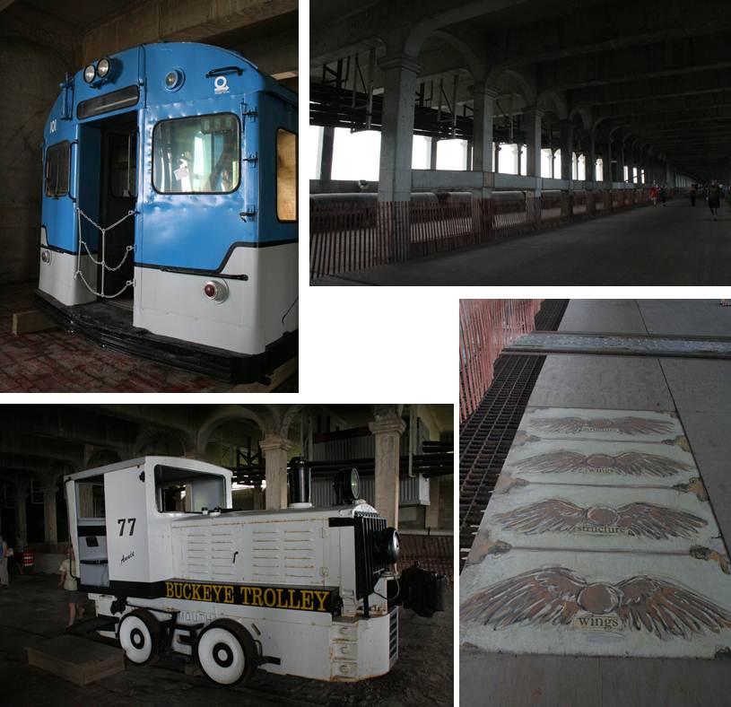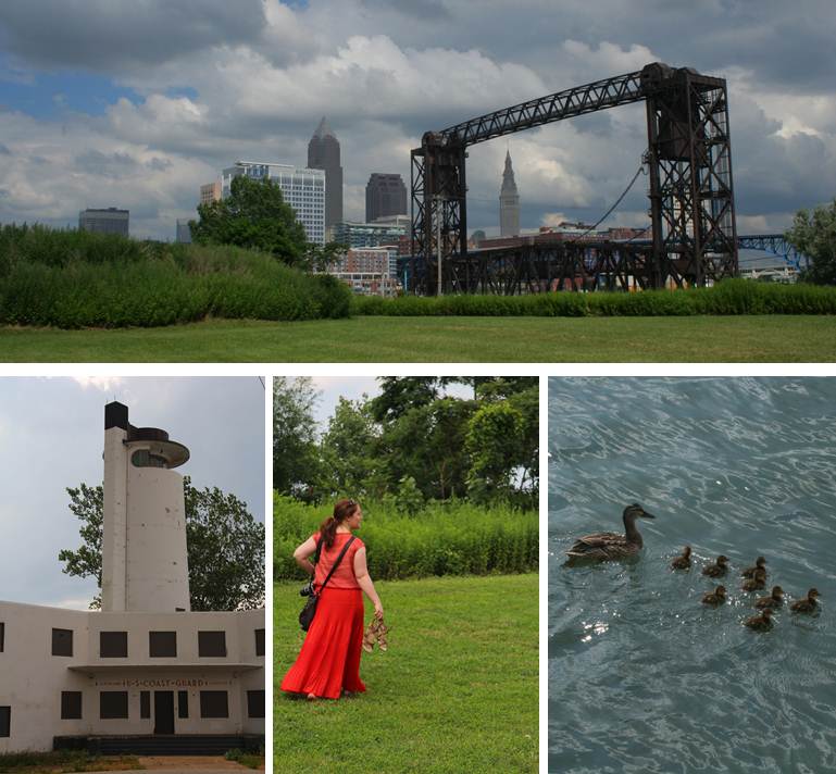 We parked near the West Side Market, which we’ve visited a time or two, to begin our adventures.We walked along West 25th for breakfast at Townhall. I’ve been waiting for it to open, and was not disappointed! They have a build-your-own-crepe station for goodness sakes! We also tried the homemade ginger ale (VERY ginger-y) and the Townhall mimosa, made from hard cider and orange juice. Yum!Our first stop was the Greater Cleveland Aquarium. While I’m sad some of the other Powerhouse business had to go away for this to set up, it was very busy, and I would love to see more traffic in the Flats.We walked from the Aquarium along the Left Bank, watching some freighters go by, checking out the patriotic bridges and capturing some shots of downtown.We crossed over to the Right Bank and came across a number of things I didn’t even know existed. Irish Famine Memorial? Bridge mosaic artwork? Log cabin manned by period-costumed man giving tours? Settler’s Landing RTA stop? Anyone?We climbed up out of the Flats to the Veteran’s Memorial Bridge, which ended up being one of the most fascinating events of the day. Once a year, the city opens up the old Subway for visitors. Did you know Cleveland once had a subway?? I was blown away!We walked along under the bridge, following the old tracks to what used to be a station. There were several presentations going on and old directional signage and the actual cars were accessible for pictures. We could not have timed our adventure better if we had tried!We exited the old subway station at West 25th and walked back down to the Heil Block for lunch at the Black Pig, which I have also wanted to try for some time. We shared the pate and pickles, duck confit and pomme frites with garlic aioli. I loved the classic rock music and decor.We exited the Black Pig, passed Nano Brew and walked right into the Glass Bubble Project! This little shop was fantastic with all kinds of vases, home decor, etc. hand-blown in the shop. I bought a pretty shamrock ornament while the fiance chased around the front door man/rooster!We wrapped up in Ohio City and decided to nix everything else we had planned for Tremont, Lakewood and Rocky River and instead just head to Whiskey Island and Wendy Park. We walked past the volleyball courts and through the woods and trails to the pier to get some nice views of the city. I decided to lose my sandals and go barefoot at one point, and we saw a lovely mom and baby ducks swimming around. I didn’t realize the pier ended with an old Coast Guard station–we couldn’t believe they hadn’t repurposed the property as a lakeside restaurant, etc. Cleveland’s shoreline has so much potential. It kills me.We headed back to the car, but I was distracted by what I was sure was live music. Sure enough the ‘Cats on Holiday’ band was performing so we grabbed some beverages, found a spot in the shade and just relaxed and listened to the music and watched people dance.We wrapped up the day with a 8 p.m. reservation at Chez Francois in Vermillion. We changed into dress clothes (sport coats required for the gents), but unfortunately didn’t make it through dinner. We had a lovely wine, gazpacho appetizer, lobster blossom appetizer, and salad, and I suddenly didn’t feel well. It definitely wasn’t the restaurant, which was magnificent. I am attributing it to way too much sun and walking around and not nearly enough water. The entrees were phenomenal, but I had them box mine and went outside for some air until the fiance could close things out and take me home. I fell into my bed and didn’t move until late the next morning.