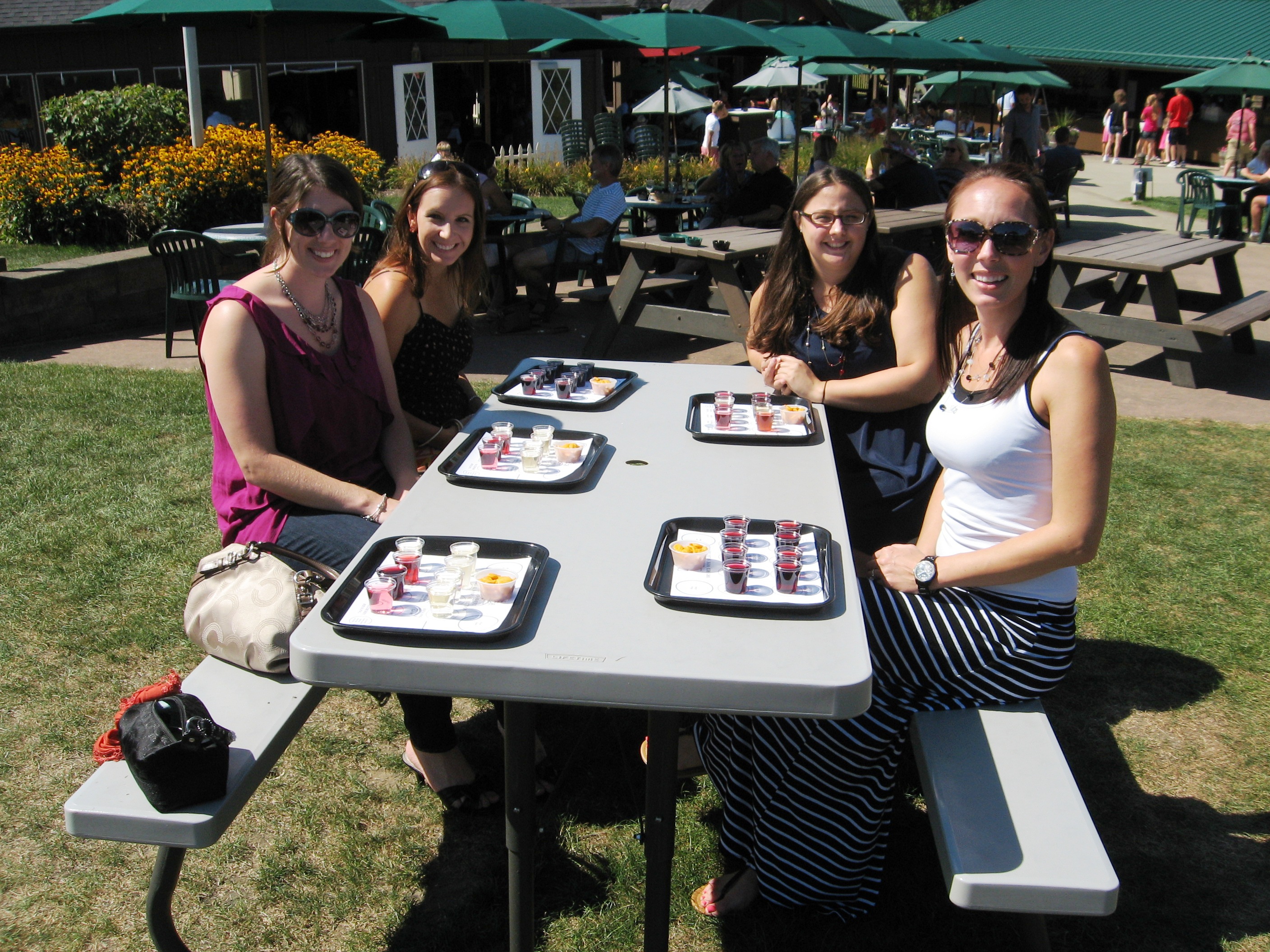 We finished and then headed to Debonne, where I could have stayed at much longer. It was a really large facility, and there was actually a wedding reception underway when we arrived! We got our samples and headed out to the lawn and patio areas to find a picnic table. It was a little warm in the sun, but it was wonderful out. A band had just set up and started to perform as we were heading out.