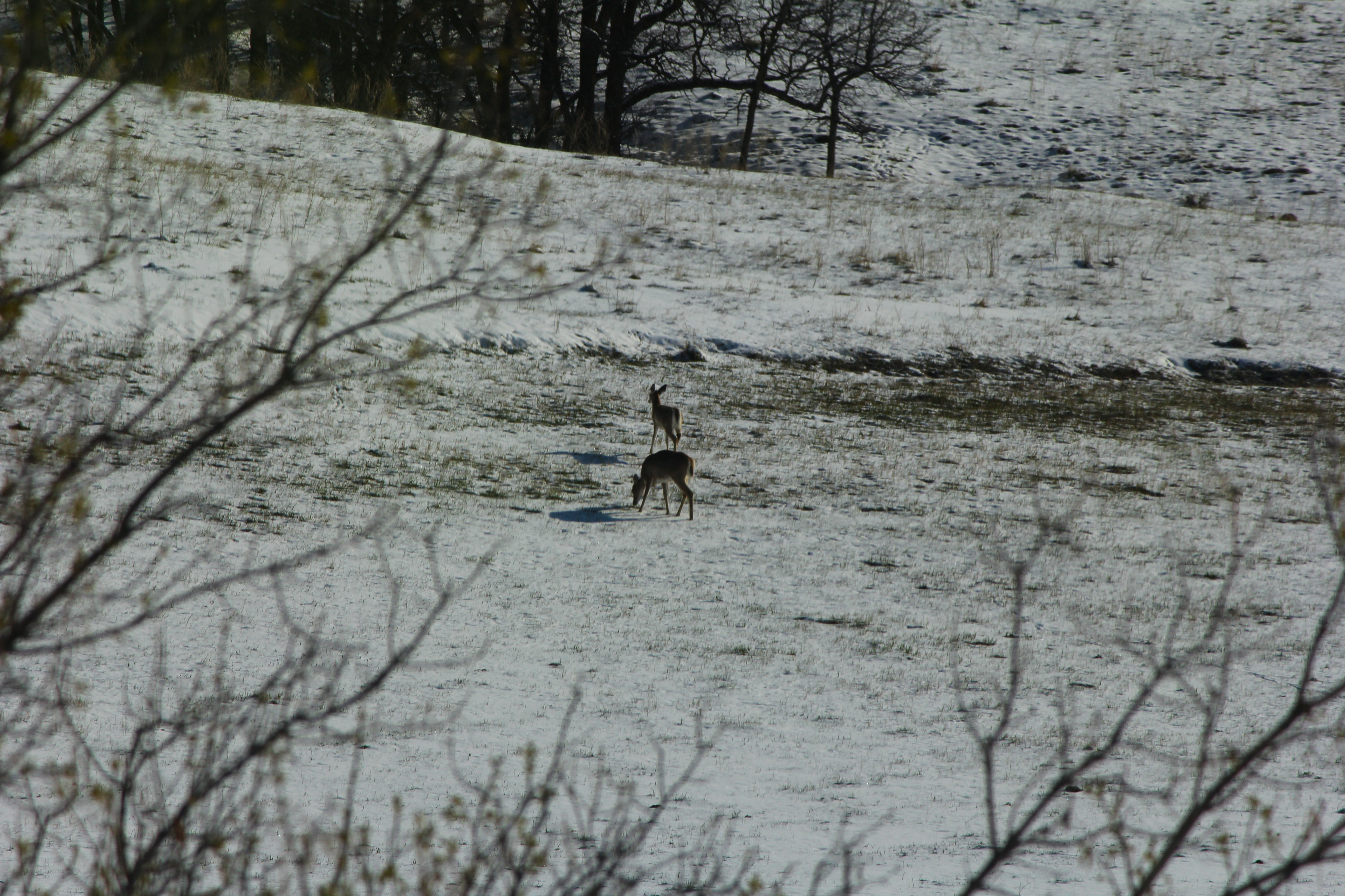 We were going too quickly, and there were too many signs that said you were only supposed to pull over for emergencies for us to take pictures, but we saw probably a dozen different herds as we drove through the state. It was fun keeping an eye out for their white rears dotting the hills as we flew by.