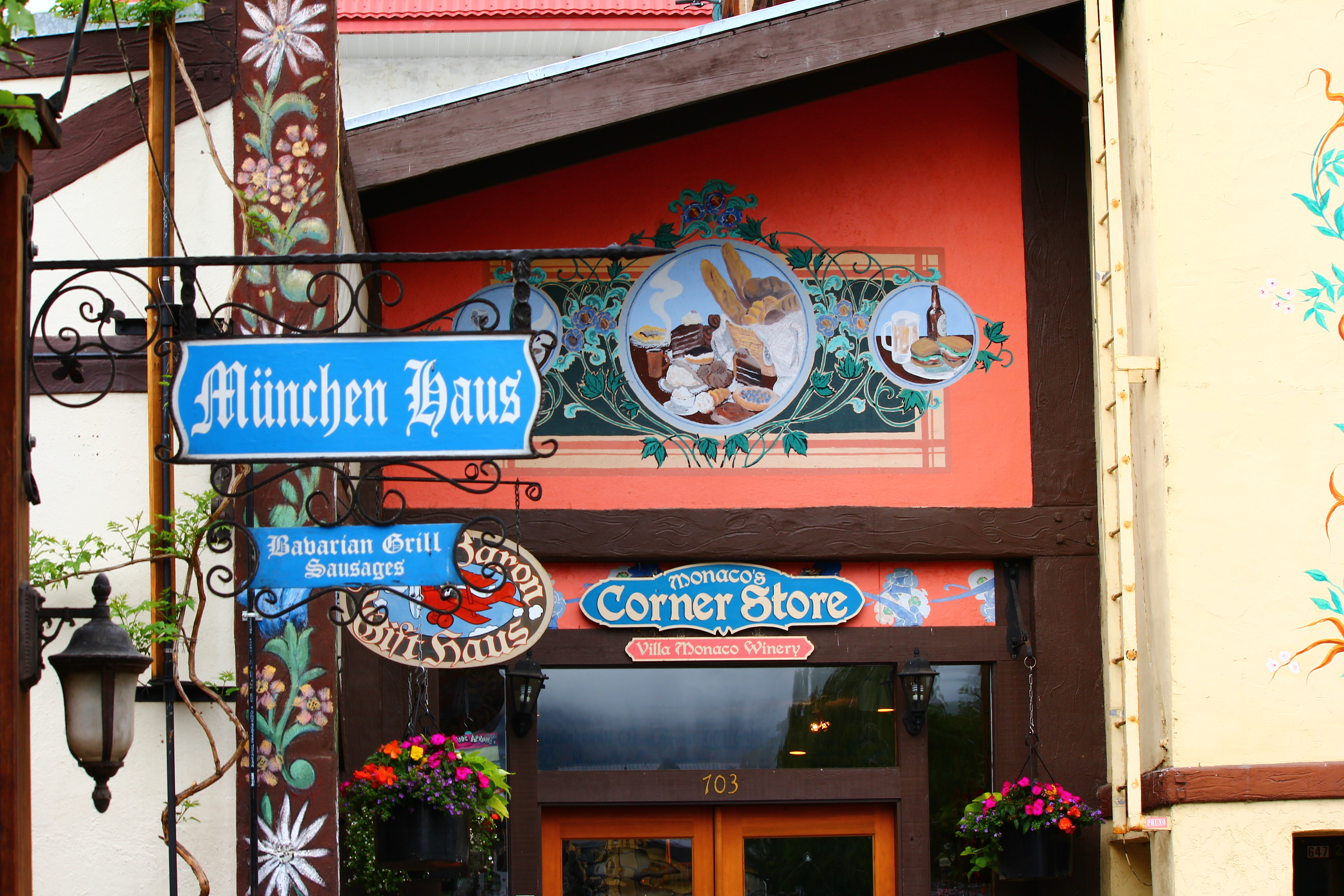 We stayed at the very reasonable and conveniently located Bavarian Lodge right downtown and within walking distance of all the shops, wine tasting rooms, beer halls and restaurants. I was a little concerned the German theme might get hokey, but I ended up being impressed at how well integrated everything seemed, from the architecture to the signage and shops. I loved it!