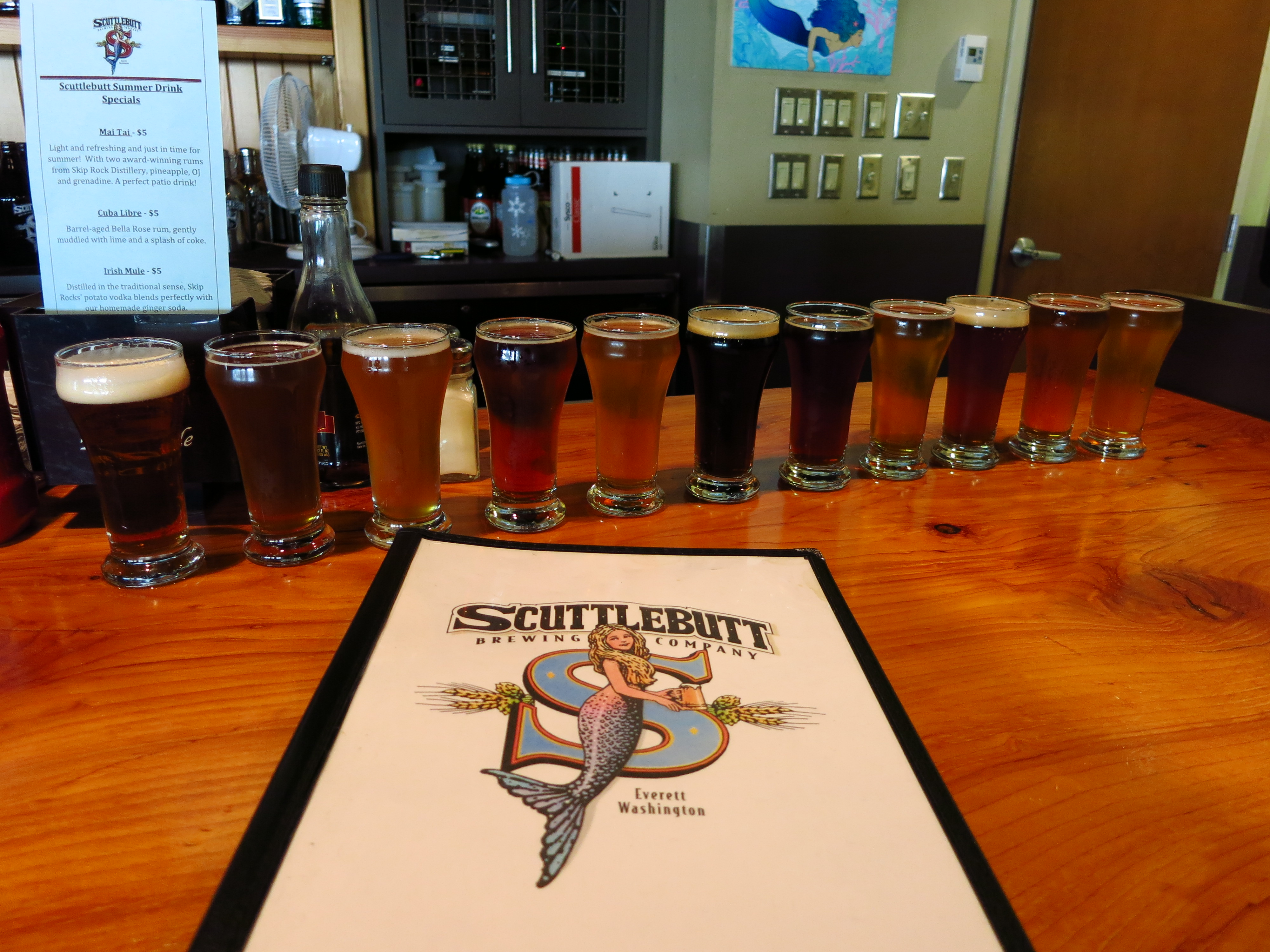 We took advantage of the extra day off during the holiday weekend to check out one of the local brewing companies, ScuttleButt Brewing. I kept seeing the word scuttlebutt on things, and when we finally stopped in the corner store we found out it was the local beer. And by local, I mean brewed in Everett!