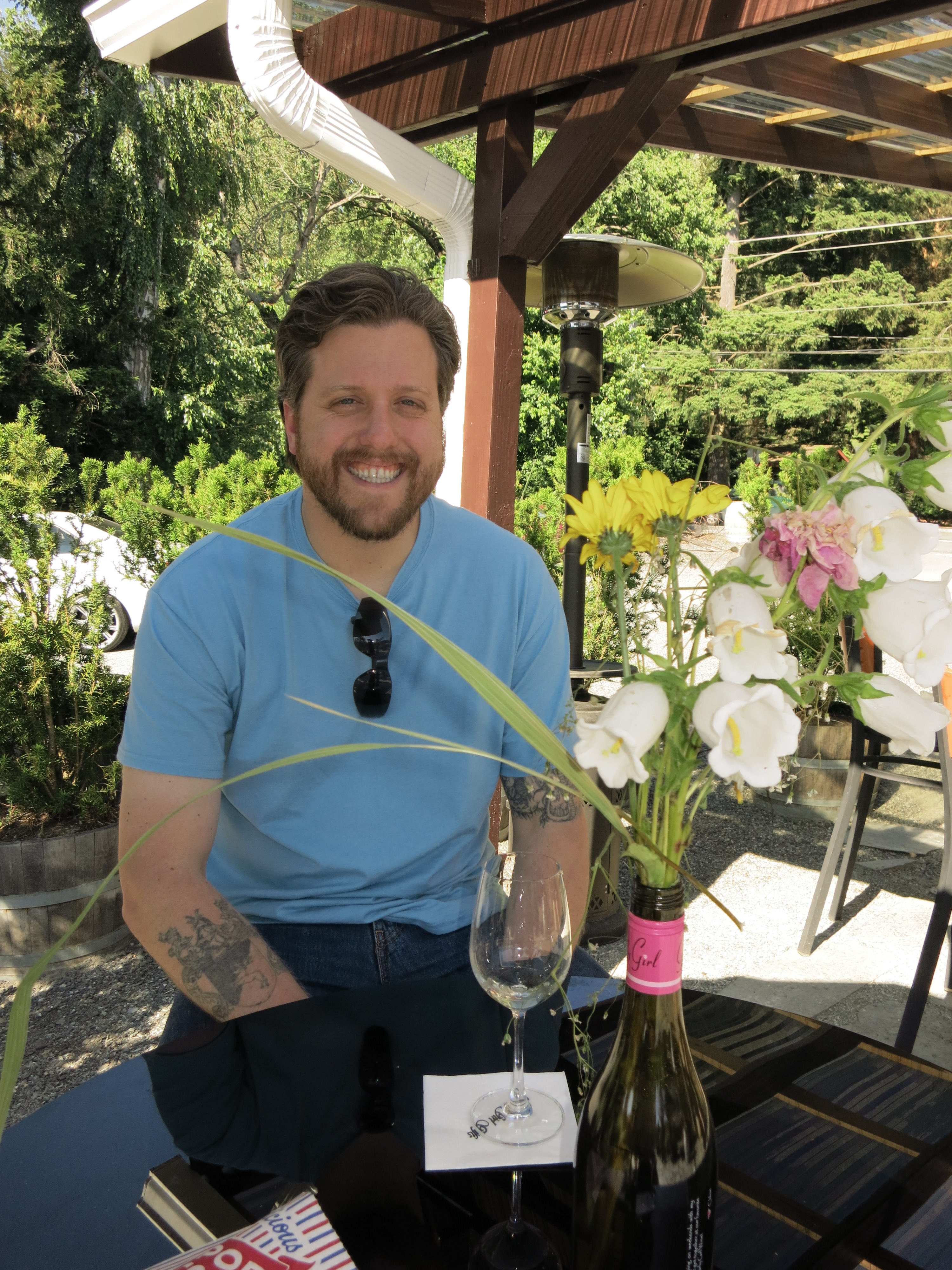 We stayed inside at the counter–in part because my husband preferred the shade and in part because my husband preferred to play with the giant shaggy dog, Garnet, who was also at the counter! The patio looked fun and a few people had delicious looking appetizers. I can’t wait to look into their wine clubs and plan a trip back.