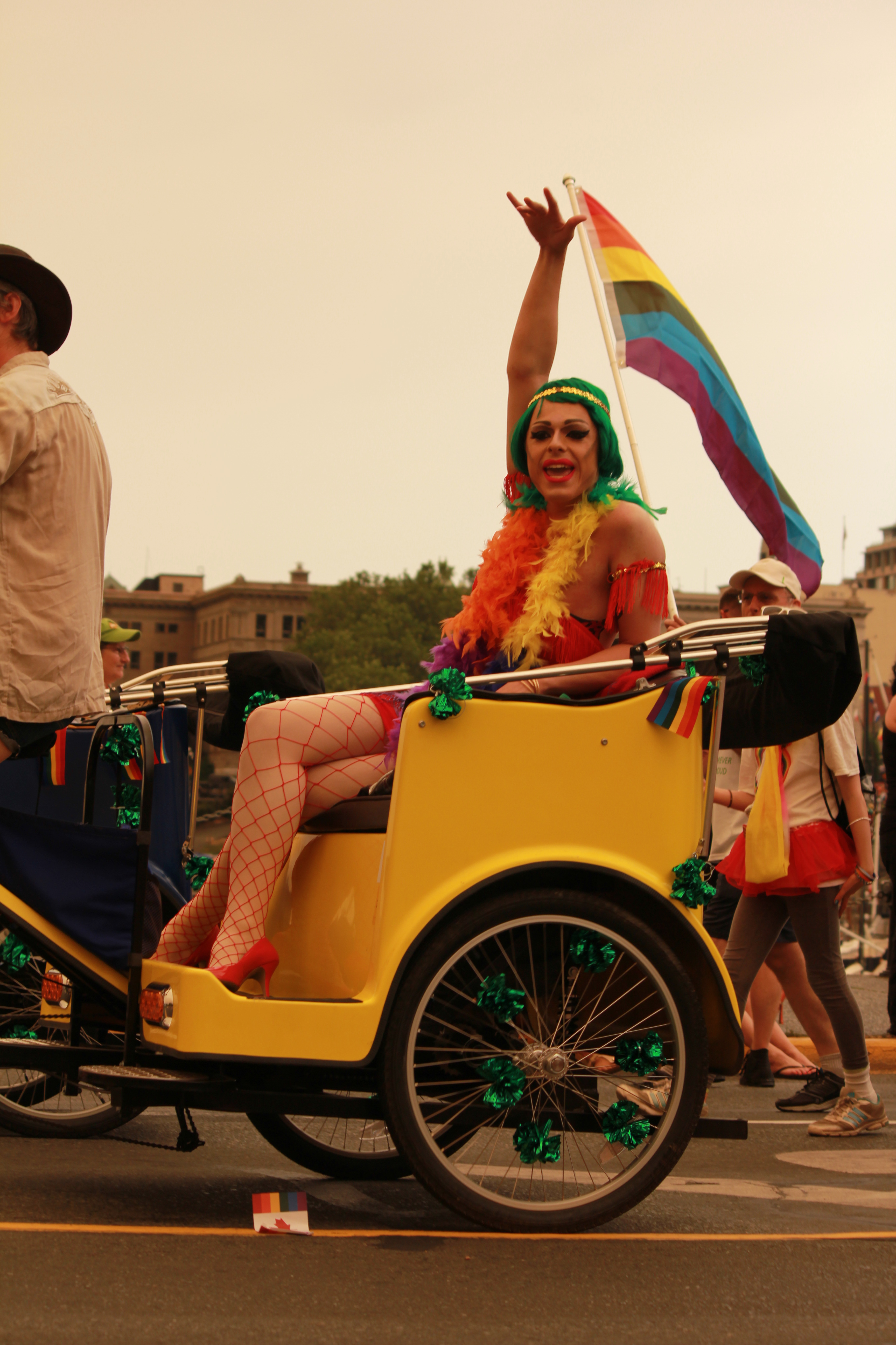 When we arrived at the harbor, people were lining up along the streets in lawn chairs and appeared to be preparing for a parade. We stopped a guy who was decked out in a colorful outfit, and he explained the parade route for the PRIDE parade! We had been there several days and never saw or heard anything about it! We were only a few minutes ahead of the start so we found a spot on the side of the road and waited for the parade to begin. The streets quickly lined up with people and although things got off to a late start, we had a blast cheering on the participants and floats!