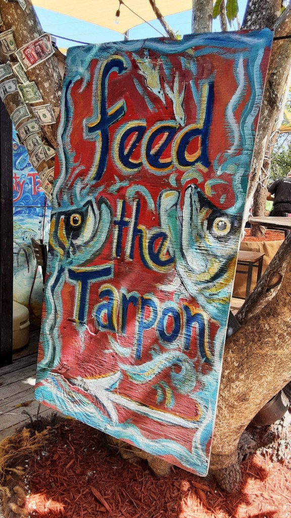 My friend’s sister recommended we split up our drive from Fort Lauderdale to Marathon Key by stopping to feed the tarpon at Robbie’s on Islamorada. We purchased a bucket of small fish, signed our lives away (no feeding the pelicans, no feeding the manatees, etc.), headed to the dock, and began dangling the fish out over the water, scared to death the giant tarpon would grab our hands along with the food!