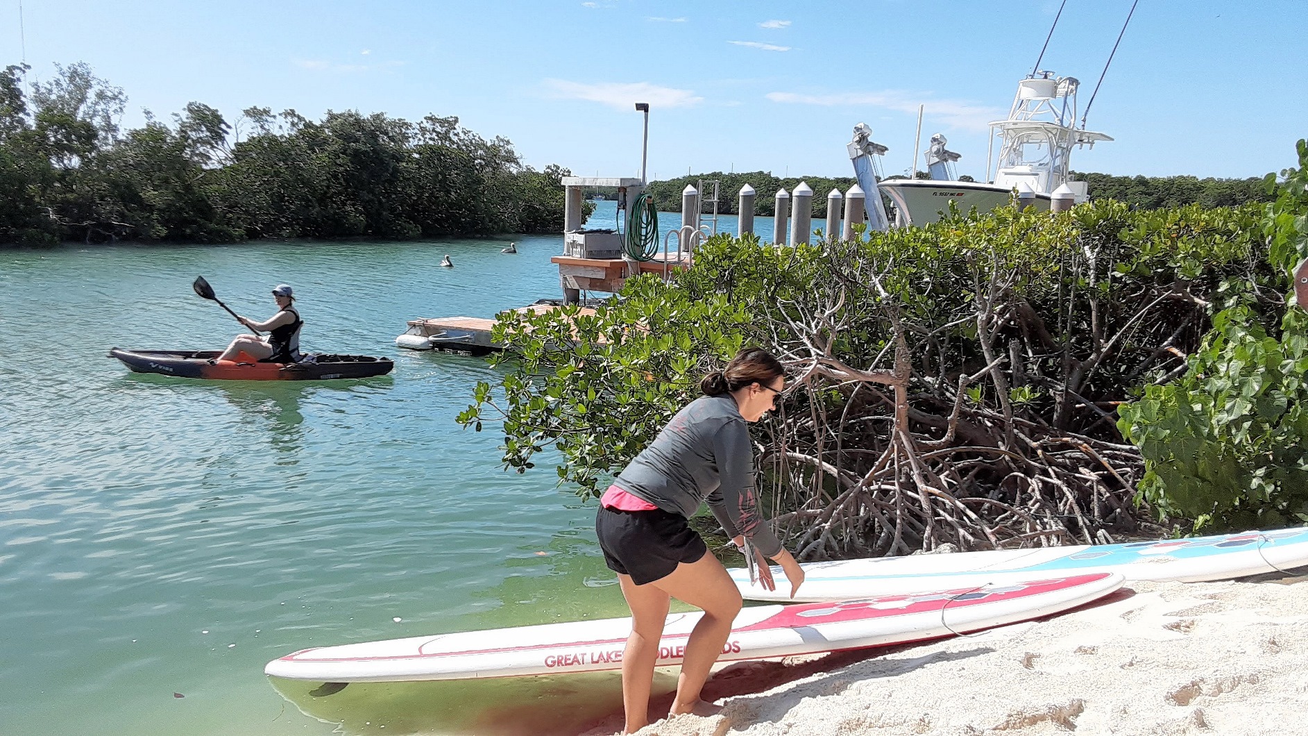 In addition to having the water right behind the house where we were staying, there were kayaks and paddleboards available for our use! Our second morning we dragged them down to the beach out back and launched them into the canal so we could explore the surrounding area.