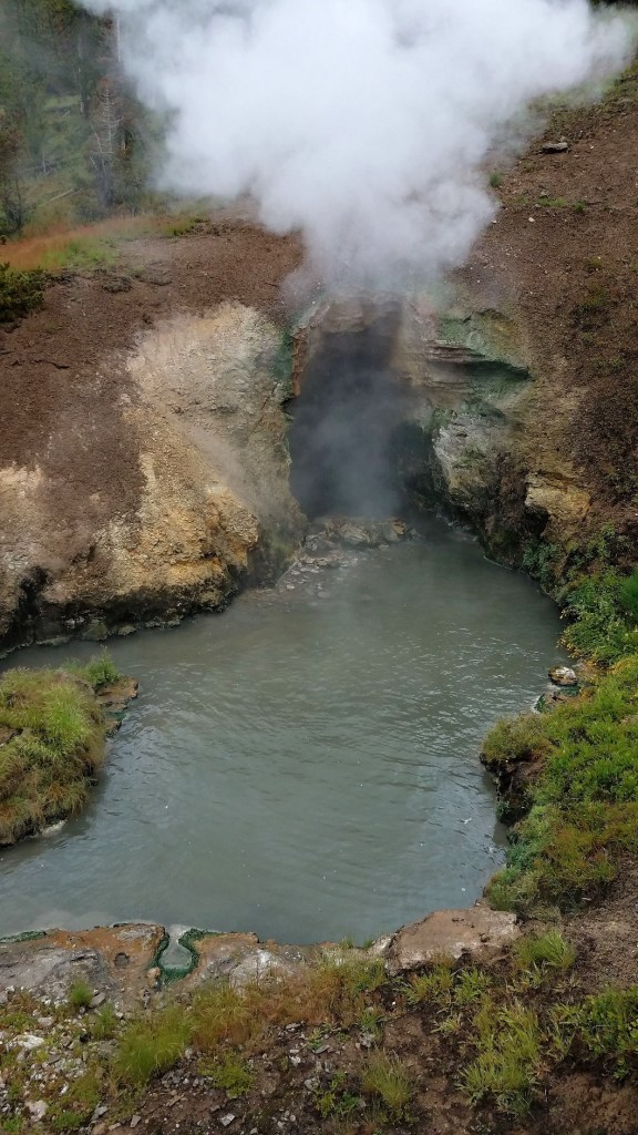 The Mud Volcano was fairly active but the Dragon’s Mouth Spring ended up being our favorite part of this stop. The cave keeps belching steam and hot water and emitting grumblings that certainly make it seem like a dragon is deep in its lair and preparing to emerge!