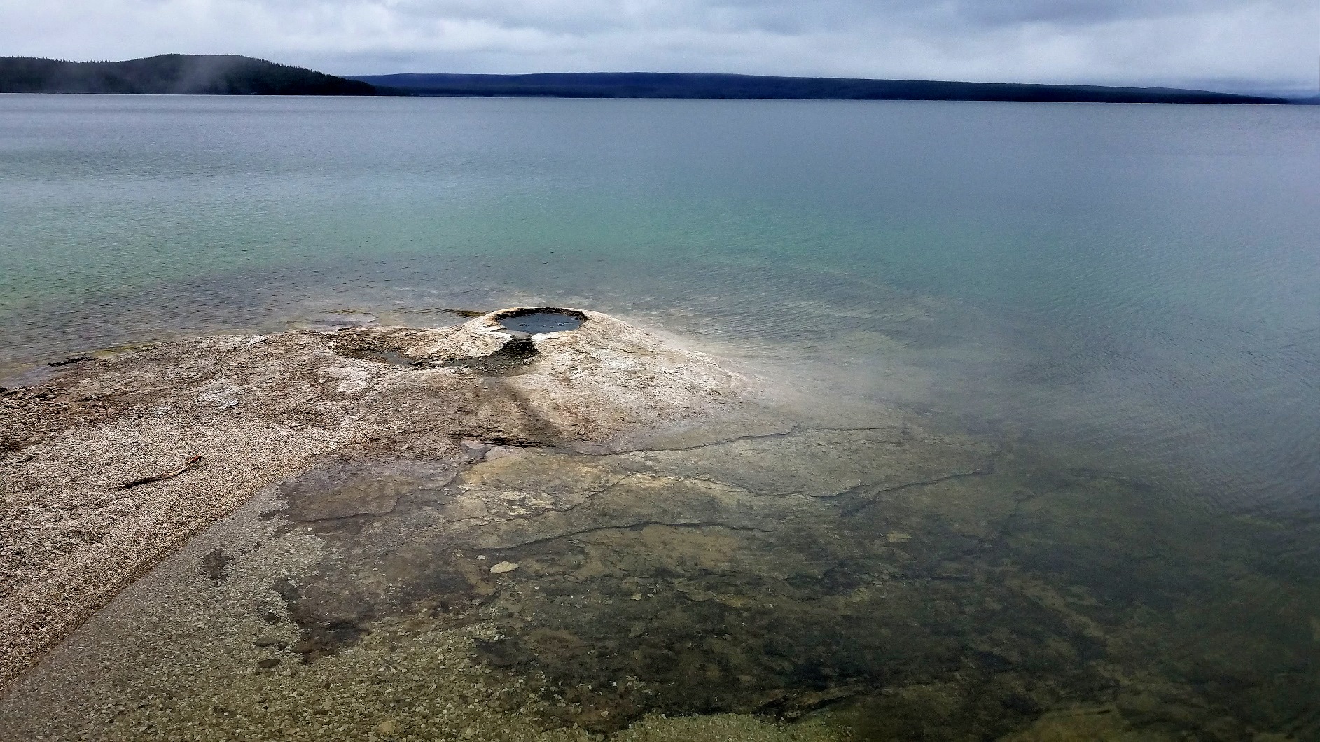Another unique feature is the Fishing Cone, the mini volcano out in the lake in the photos below. It was documented in early scientific expeditions of the area as early as 1870, and according to the park website, gained its name because visitors would actually catch fish in the lake and cook them in its boiling water from the late 1800s until well into the 1920s!