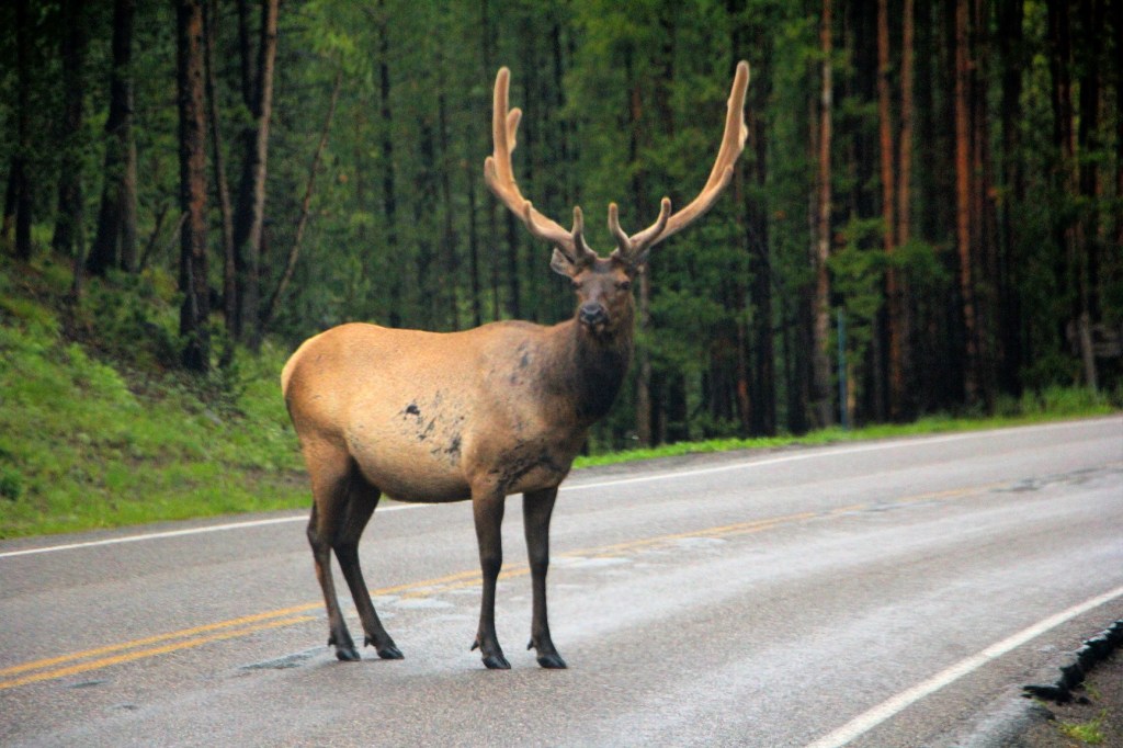 The beauty of getting an early start is that traffic is reasonable, crowds are sparse, and wildlife are often on the move. We hadn’t driven far before we came across some bull elk. One in particular seemed to have no trouble stopping traffic to cross the road.