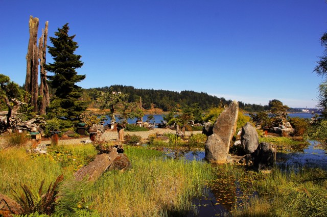 On our way to Bainbridge Island from Gig Harbor during our recent Labor Day motorcycle trip, we made a stop at an unusual roadside attraction Brian found near Port Orchard called Elandan Gardens – home to hundreds of different types of Bonsai trees!