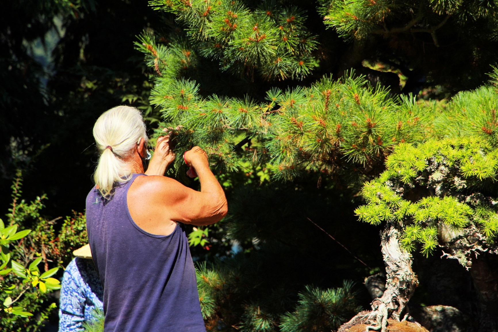 She very quickly corrected our pronunciation of Bonsai – it is not pronounced like the war cry (BONZ-i) – rather it is pronounced (BONE-sigh). Her husband is a world-renowned Bonsai expert and has spent the past 60 years perfecting his art on the more than 200 trees on the property and traveling around the world lecturing on the discipline.