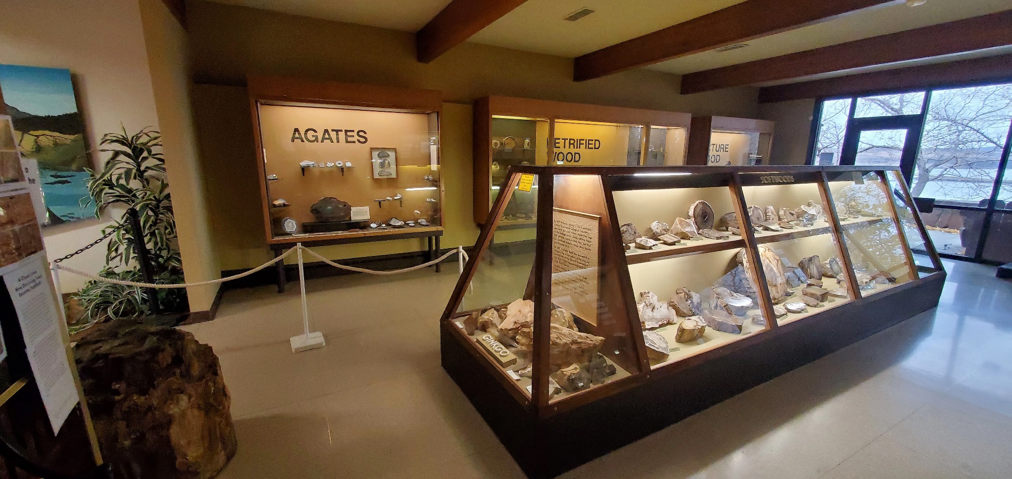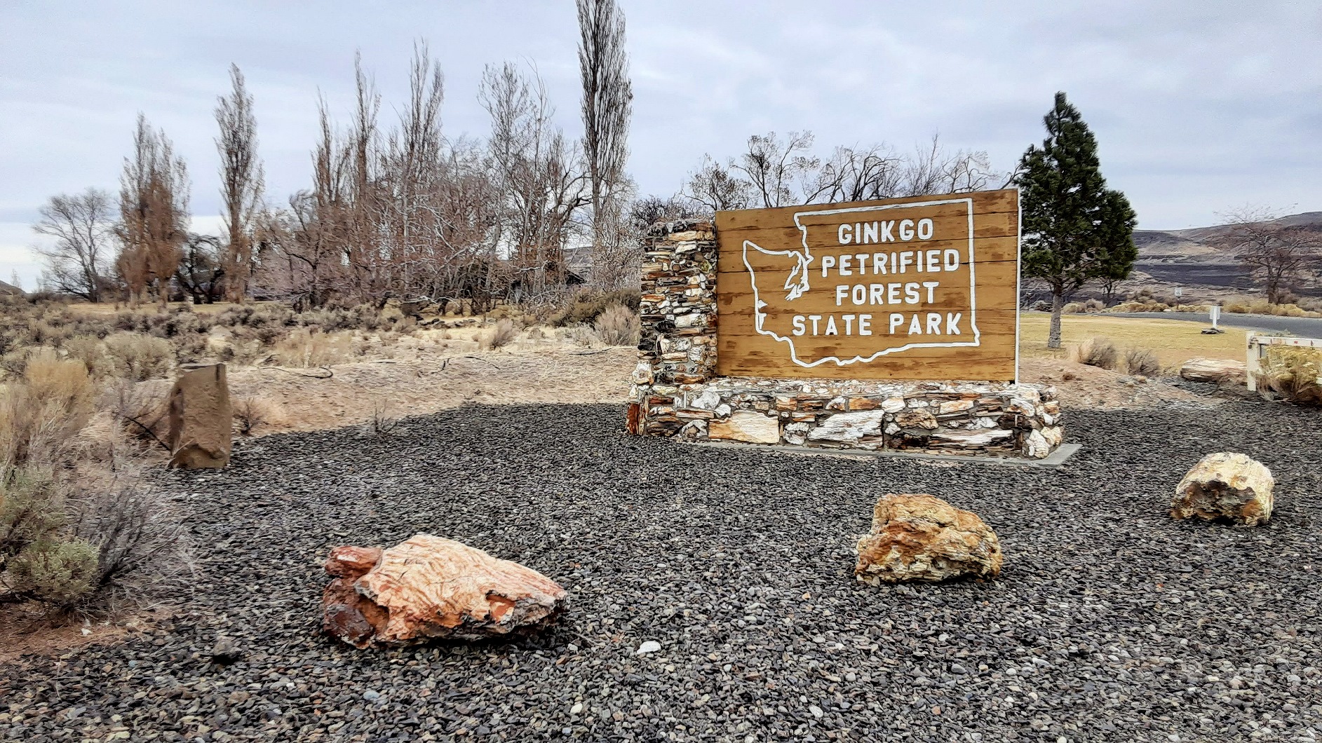 Ginkgo Petrified Forest State Park, established in 1935, is home to a rare and vast petrified forest. The abundance of tree species discovered here make it one of the most diverse petrified forests in North America. The interpretive center was constructed by the Civilian Conservation Corps during the Great Depression and was later expanded in 1951. The park contains 7,124 acres, including an interpretive trail, on which visitors can hike and see several of the species of petrified trees in the ancient lakebed where they were formed.