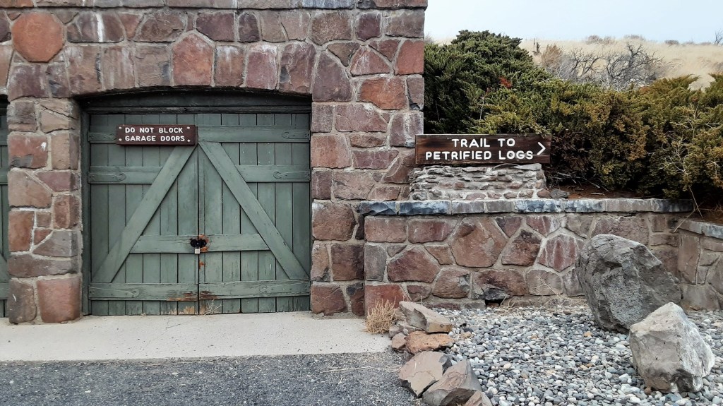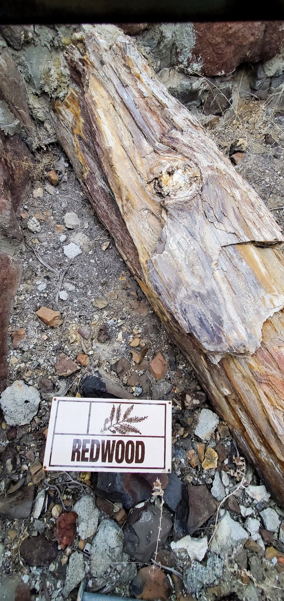 We quickly came across the first batch of caged-in petrified trees and were surprised at the variability in how much of the tree was visible and whether or not it was labeled. Looking through our pictures, I see we didn’t capture this well – along the trail you can see metal cages. Parts of the petrified trees are in cleared areas several feet under ground and covered by metal bars so you can’t reach down and touch them. As you approach them along the trail, you can look down at the exposed remains and many of them had a small plaque with the type of tree labeled. If it doesn’t have a label, you might be able to deduce which type of tree it is using the map above.
