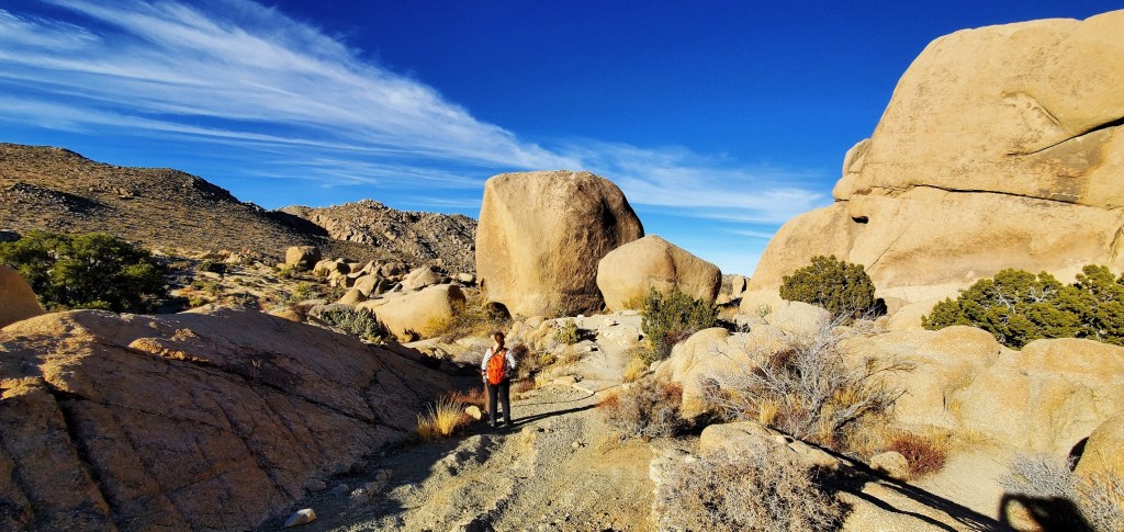 Our last stop was our longest hike — the Split Rock loop trail, which is 2.5 miles roundtrip with a very modest 150 feet of gain. The sun was starting to head for the horizon so we moved through pretty quickly, realizing the hike should be called split ‘rocks’ given most of the rocks in this area fit the description.