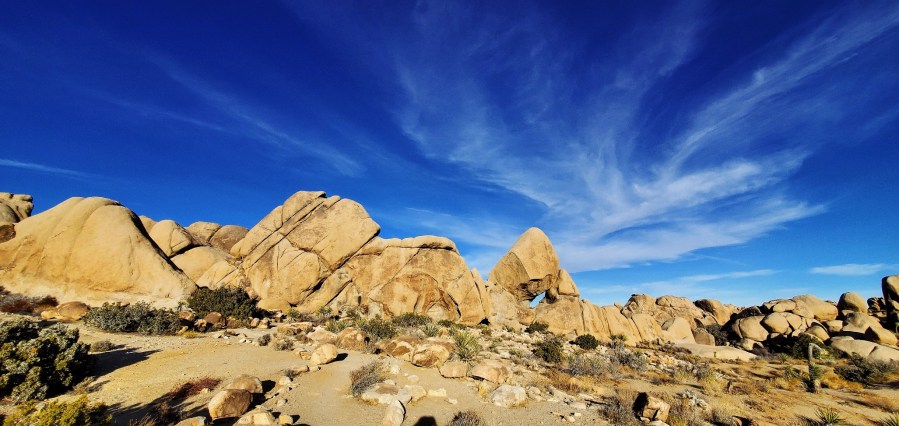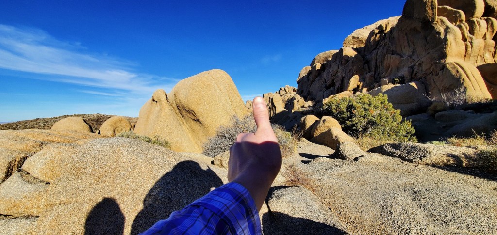 We spent a little more time hiking to Arch Rock than intended because — despite stopping to take a photo of the sign! — I led us down the Back Country Trail instead of the Arch Rock trail. We soon discovered we were heading the wrong way and turned around — the silver lining was that our mishap led us to our first Joshua trees!