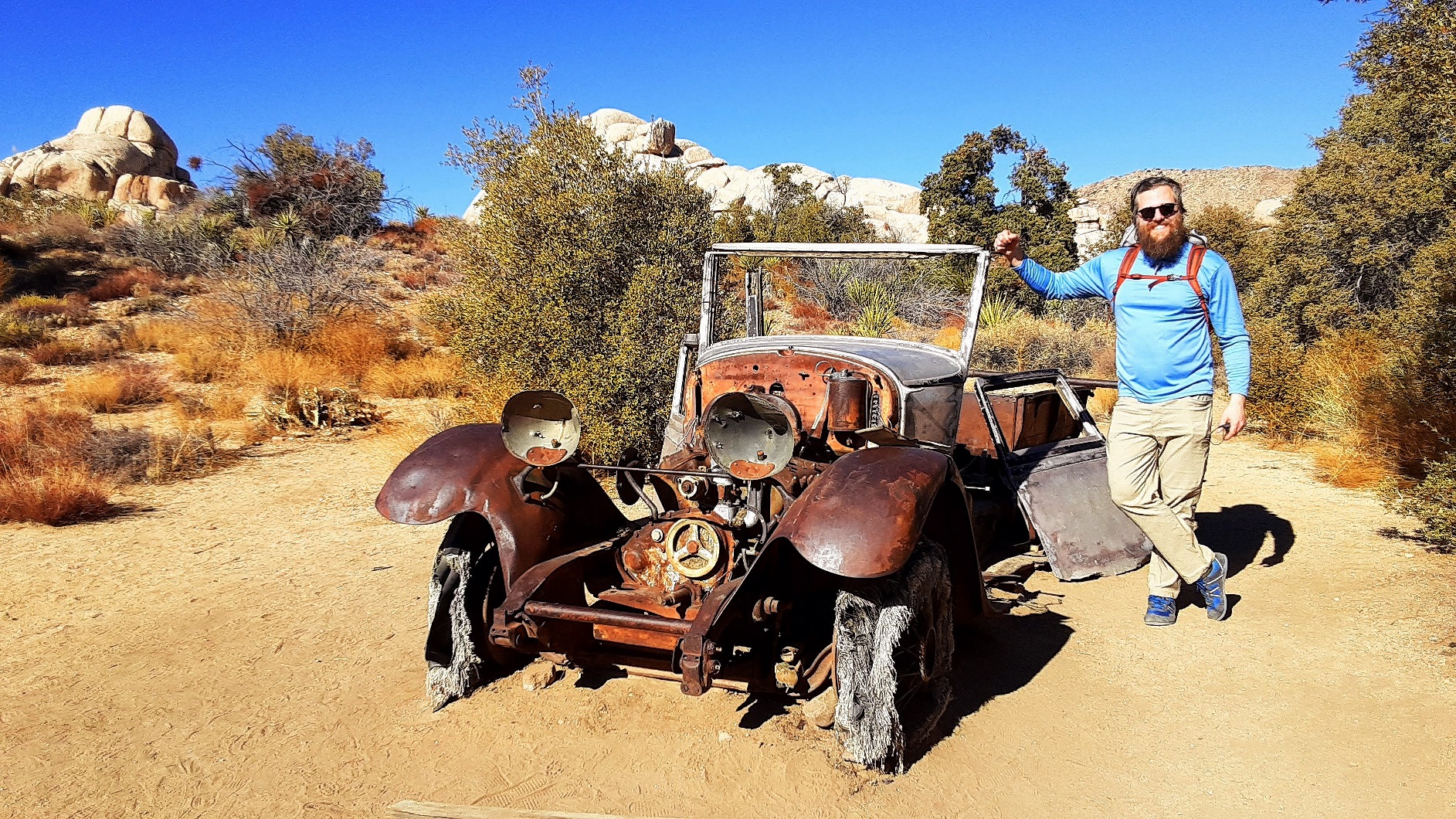 We began by hiking to Wall Street Mill, which is a flat, 2-mile, out-and-back trail to a historic gold ore milling site. I was surprised by how few people were on this trail given how easy/accessible it is and all of the cool sights along the way — there is a recreation of a sign the landowner posted after he murdered his neighbor over a boundary dispute, rusted vehicles and vehicle parts, an old water tower and well, and the mill itself. We enjoyed the plaques detailing some of this history along the way.