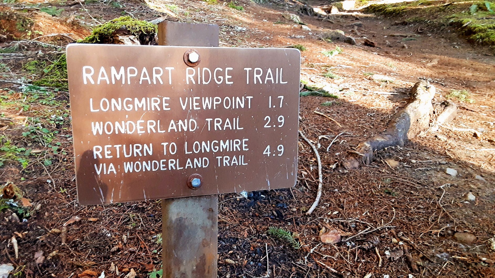 We set out for the Rampart Ridge Loop trail from Longmire in Mt. Rainier National Park, surprised to find ample parking after the longer-than-usual line to get in the park entrance. It seemed like everyone was headed to Paradise, and Brian thought he had read something promoting the family-friendly Paradise Snow Play area that was sure to draw crowds on such a beautiful day.