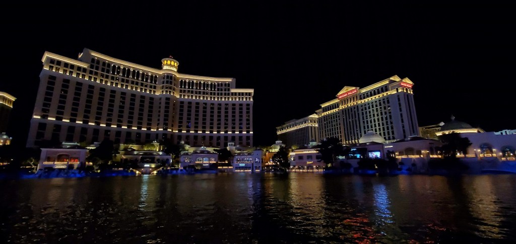 I really enjoyed seeing everything lit up at night, but my favorite moment was crossing ‘experience the Bellagio Fountain’ off my bucket list. There were very few people out so we had front-row, socially distanced spots along the water to watch the show.