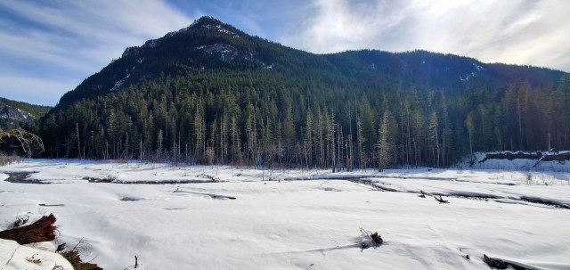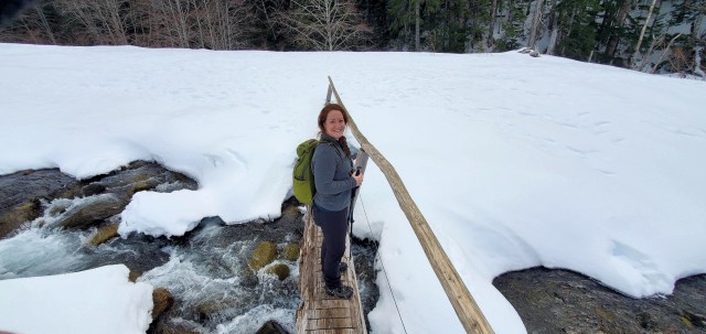 Enough people had hiked the trail that it was easy to follow and the snow was well packed — there were only a couple sections where people had post holed through the snow on either side of the trail.