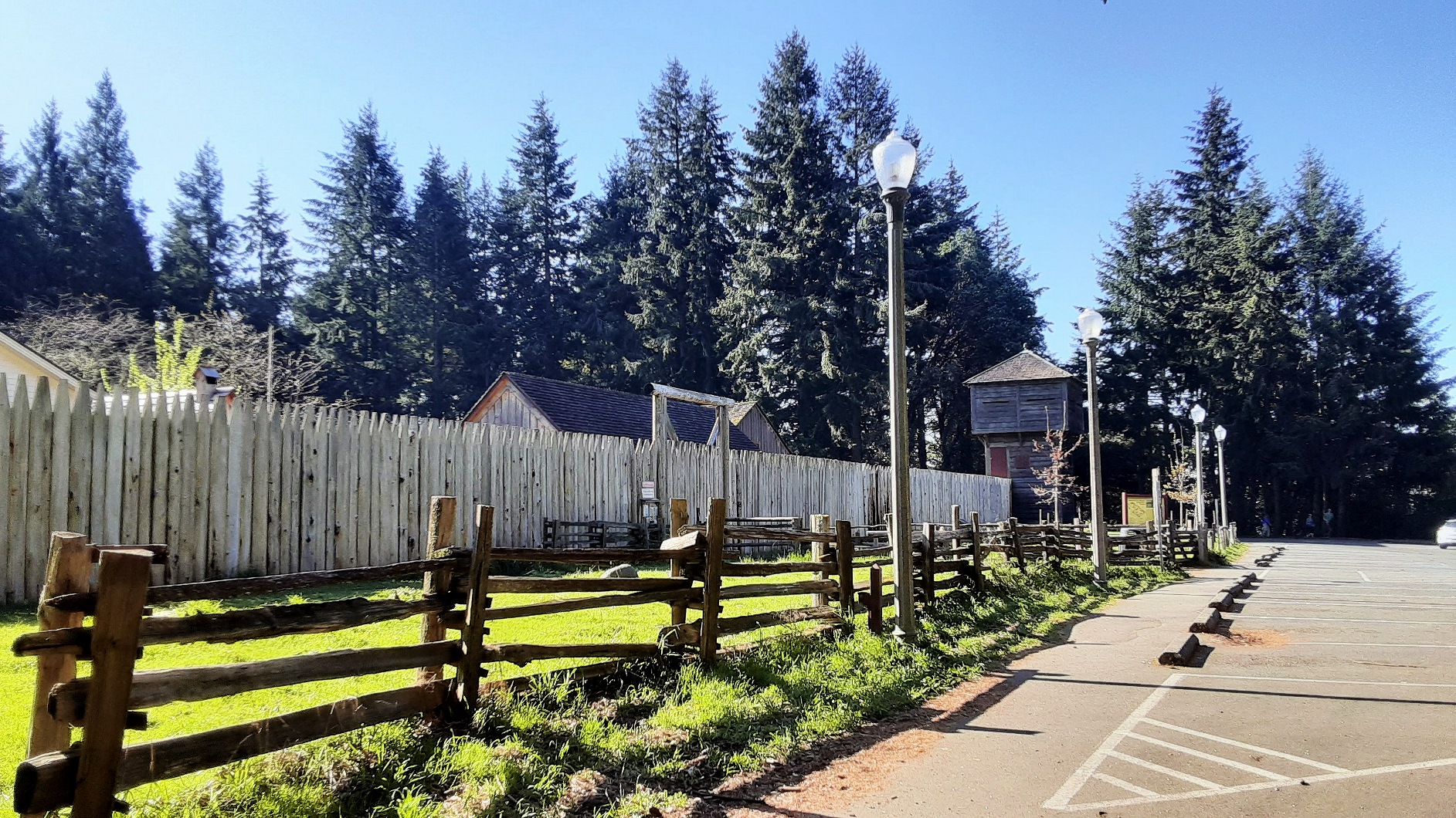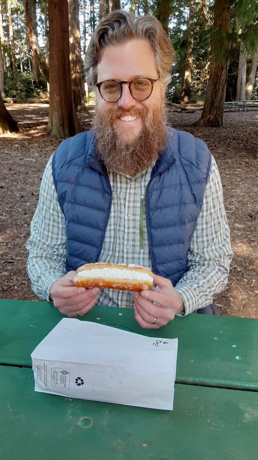 We had barely set out when Brian spotted two deer right along the trail! They were clearly familiar with people, going about their breakfast unconcerned as we continued on to find a spot for our own morning snack. We stopped at the picnic facilities outside Fort Nisqually to enjoy our doughnuts (they were delicious!) before walking them off on the trail.