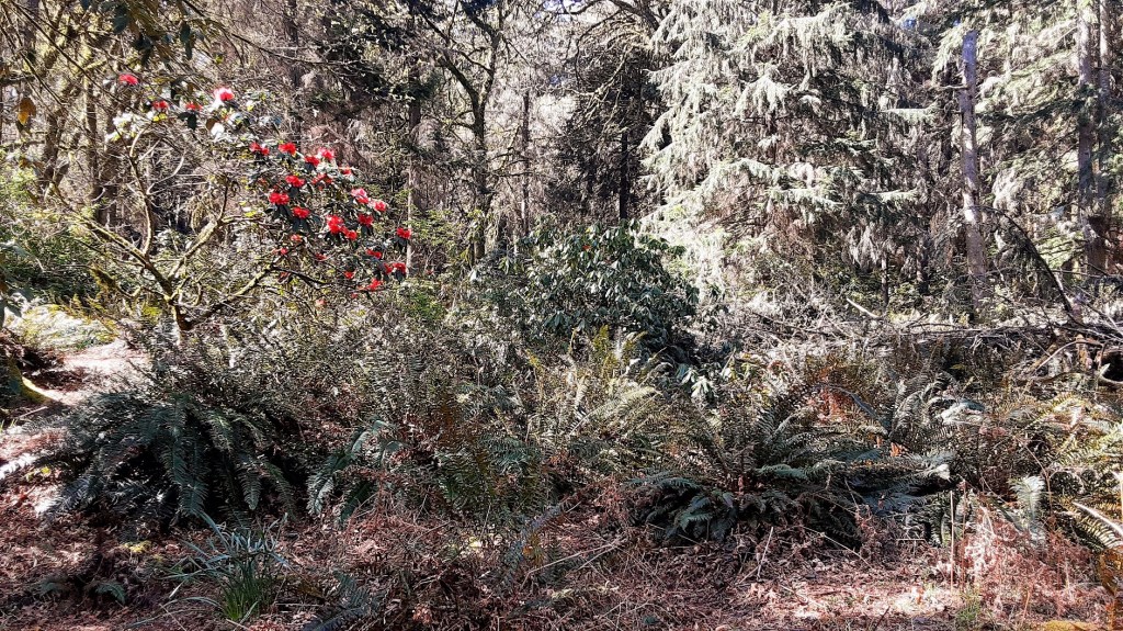 After brief stops at the Mountaineers Tree, a 218-foot tall, 450+-year-old Douglas fir, and the Vashon viewpoint, we made a slight jog to explore the Rhododendron Garden.
