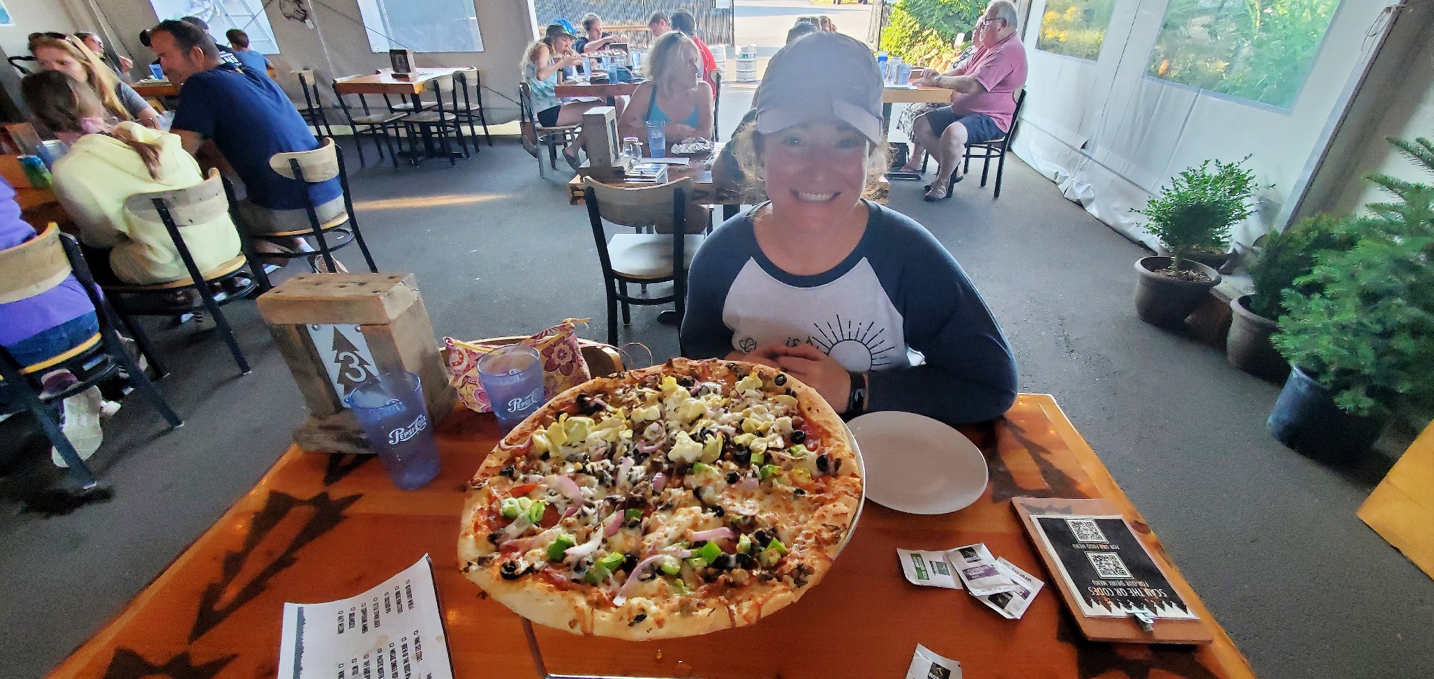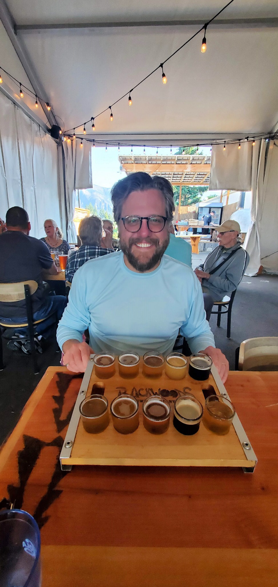There wasn’t too much going on in this small town along the northern Columbia River Gorge, but our AirBnB welcome packet included a coupon for a free beer sampler at Backwoods Brewing Company, which was within walking distance of our accommodations. We enjoyed a peaceful albeit warm walk to the brewery, waited for some outdoor seating to open up, and enjoyed sharing our sampler and a wood-fired pizza for dinner.