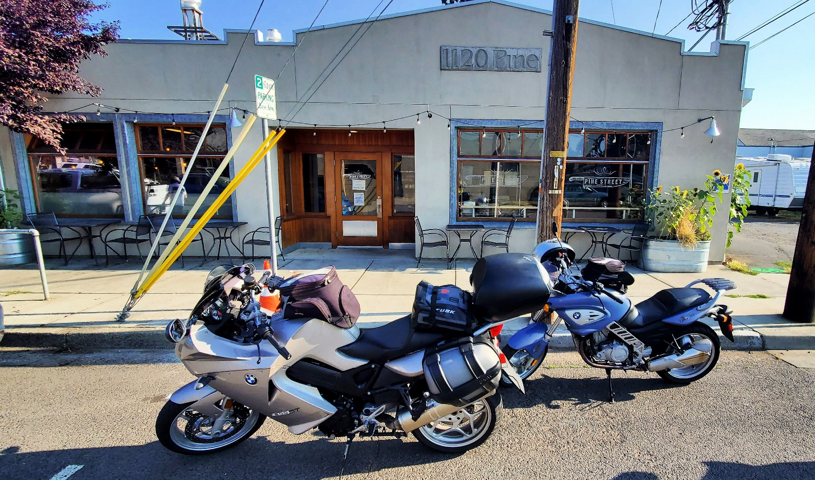 My new motorcycle, a BMW F650CS, sits a bit higher than my previous Buell Blast, and I was really noticing the difference as the wind whipped me around while we wound along the Columbia River to our breakfast spot. Several gusts truly felt like they were going to blow me right off my bike, despite Brian’s reassurances that I was hardly moving around on the road from his vantage point.