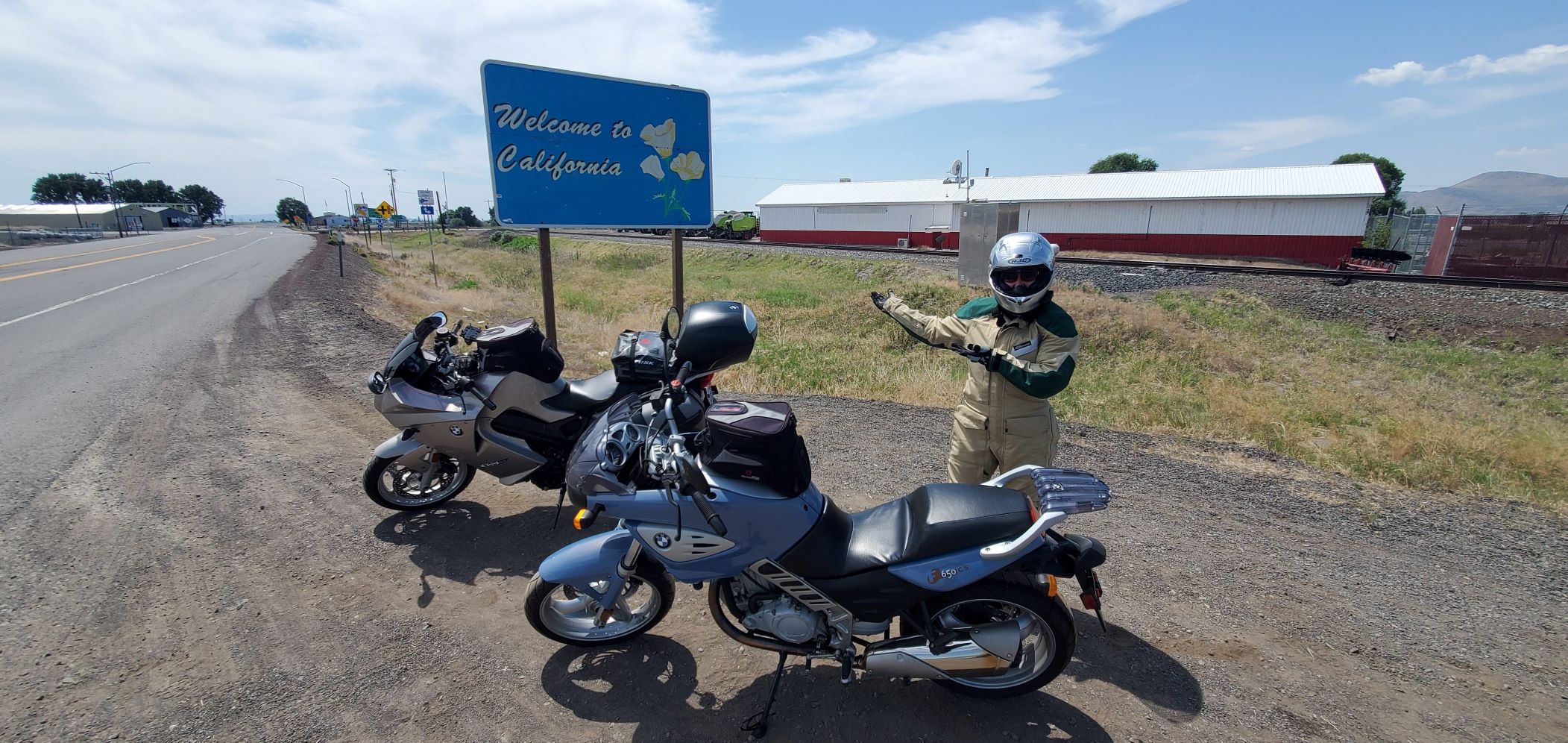 Refreshed and ready for the next leg of our ride, we continued south, hoping our rural route into California would have a roadside sign where we could take a picture of our new milestone.