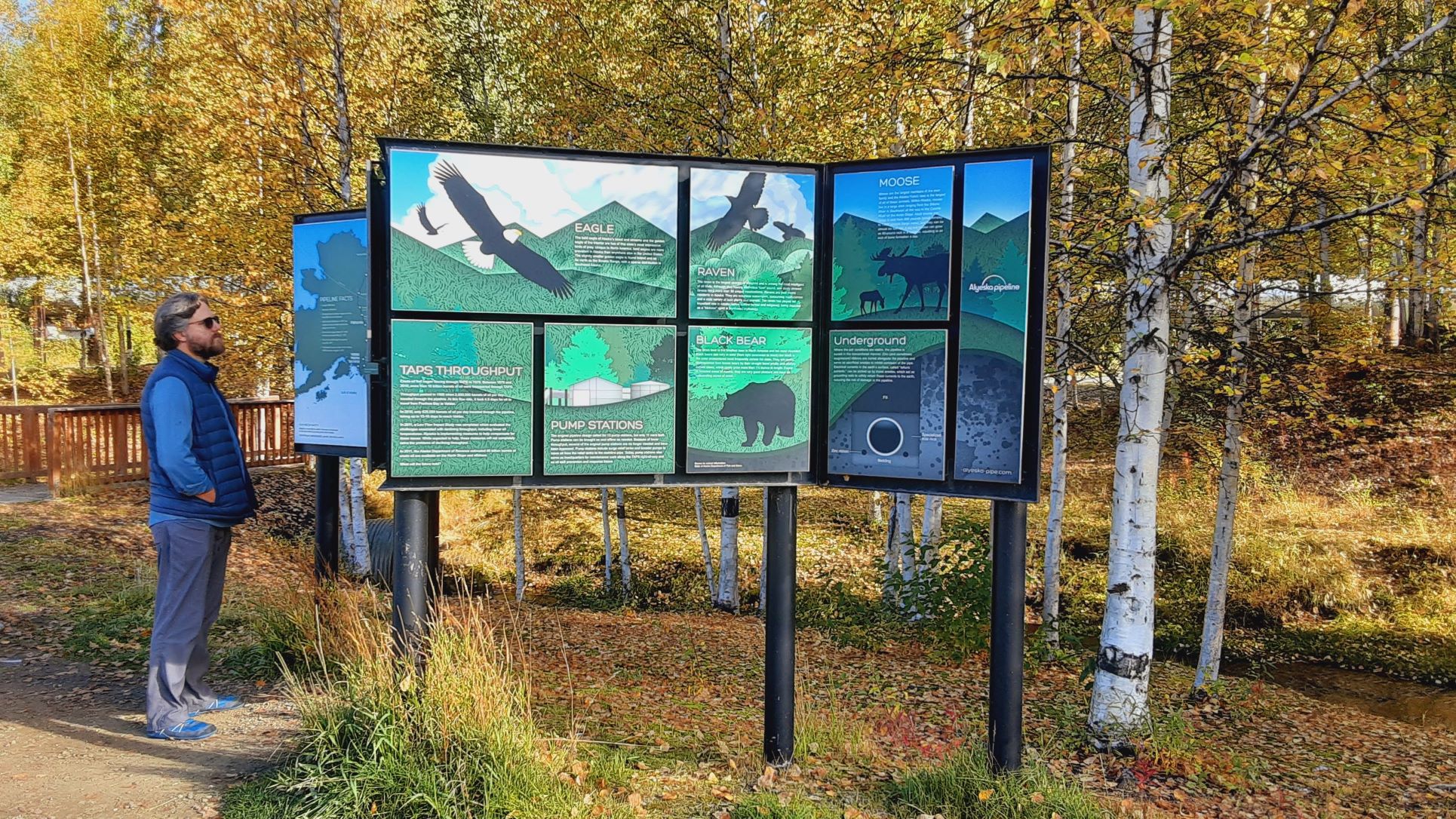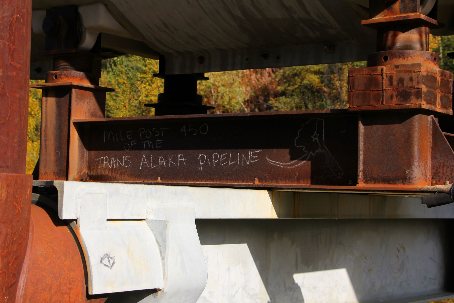 The viewpoint has a small parking area off the highway with several informational displays about the pipeline project. I was fascinated to learn about the engineering that keeps the hot pipes from melting the permafrost they traverse. Brian knew right away about the rusted pig on display (the device that cleans and inspects the inside of the pipes). Well worth the short drive to visit!