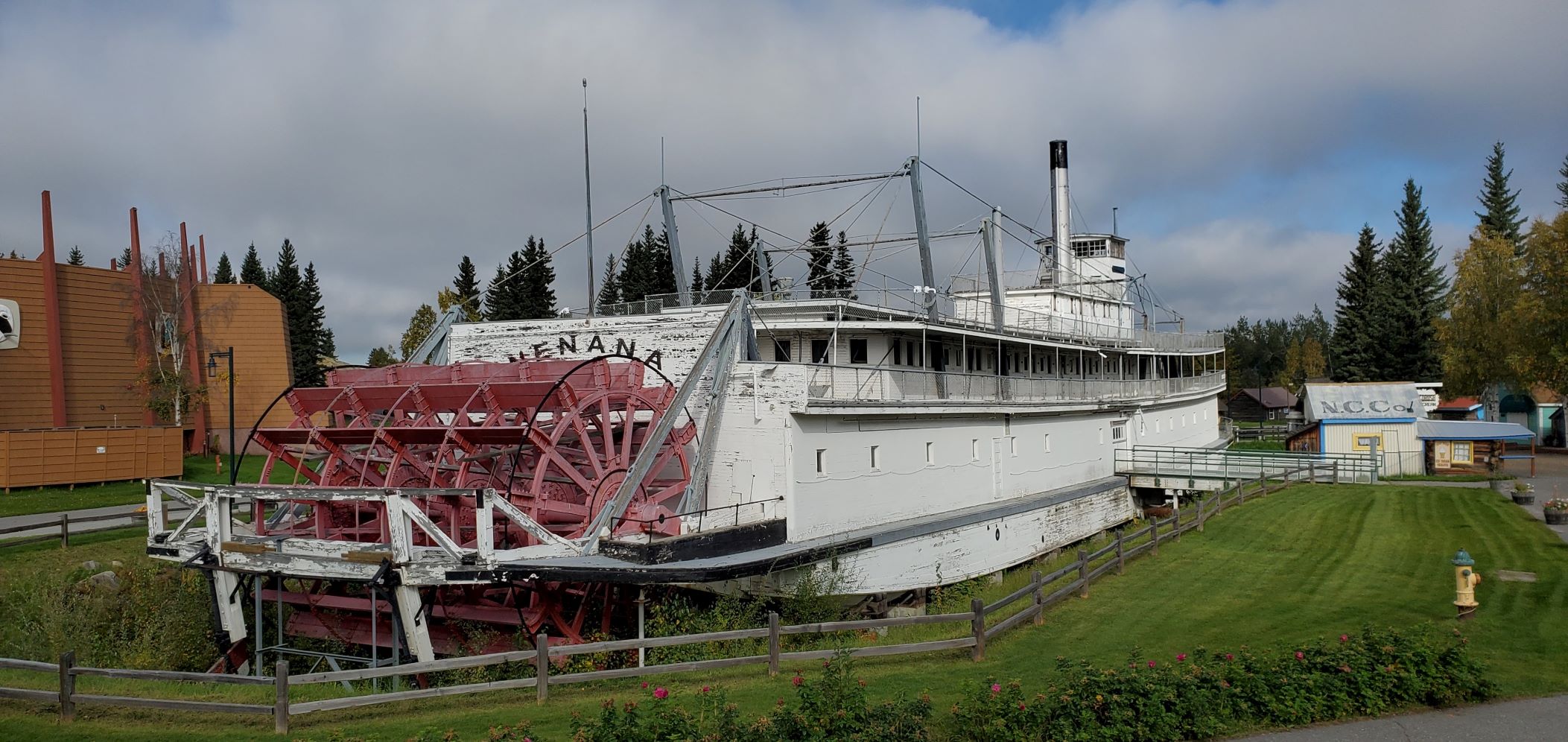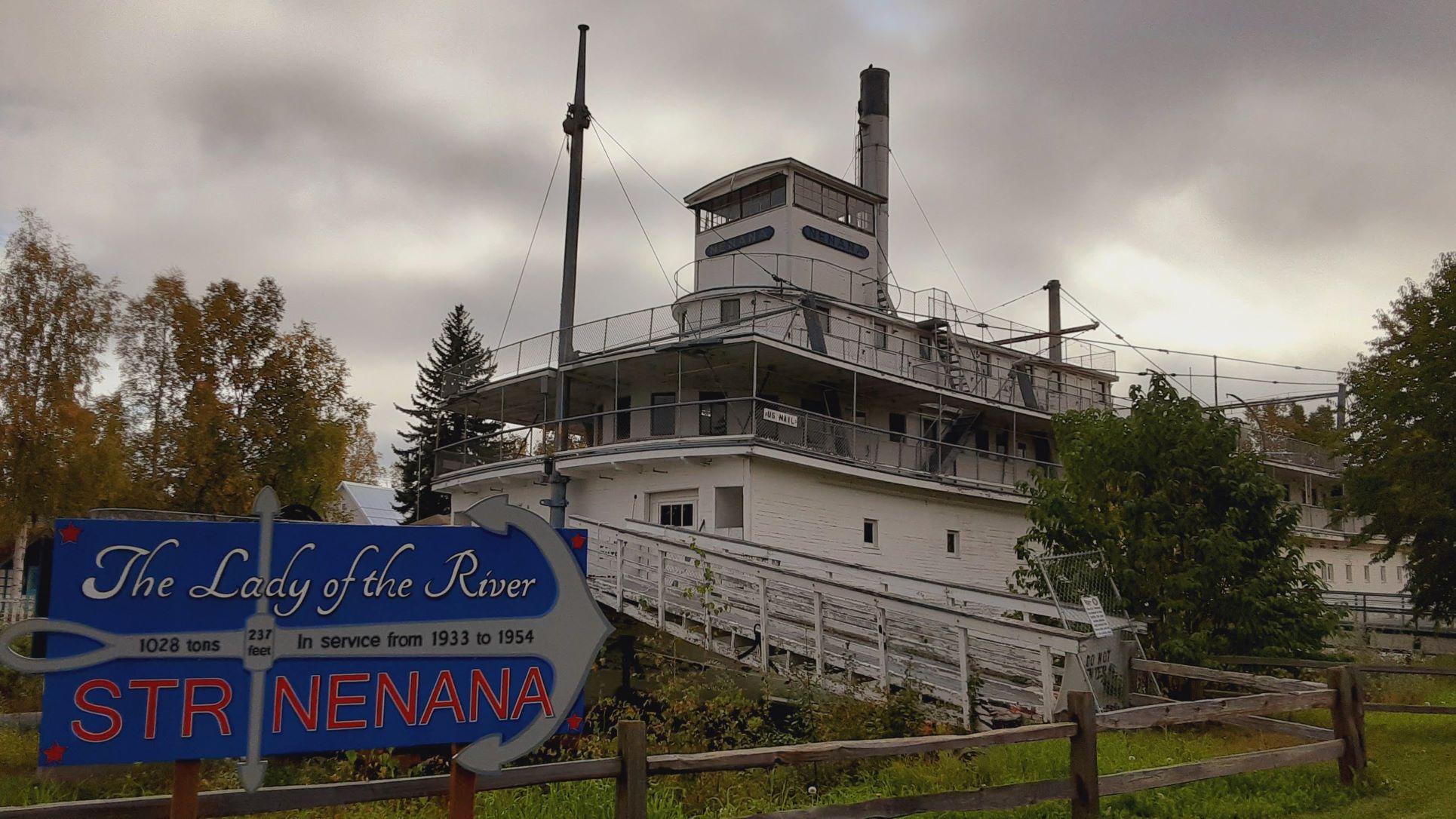 The River­boat Nenana is a stern­wheel­er, nick­named the ​“Queen of the Yukon.” She was com­mis­sioned by the Alas­ka Rail­road and built in 1933. Her parts were made in Seat­tle and then shipped to Nenana, Alas­ka where she was con­struct­ed. She plied the Tanana and Yukon Rivers from 1933 to 1954, and her pri­ma­ry run was between Nenana and Mar­shall — a dis­tance of about 858 miles.