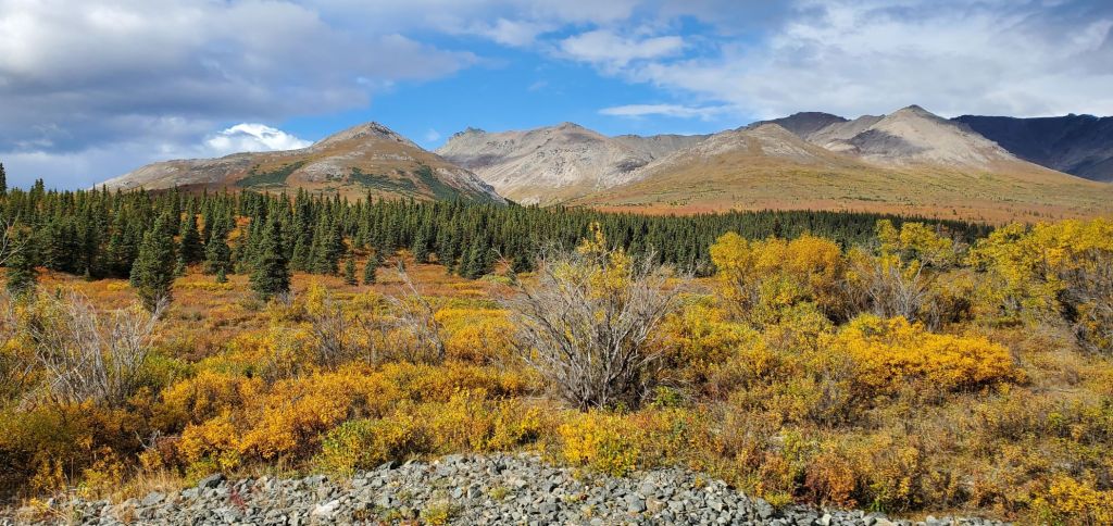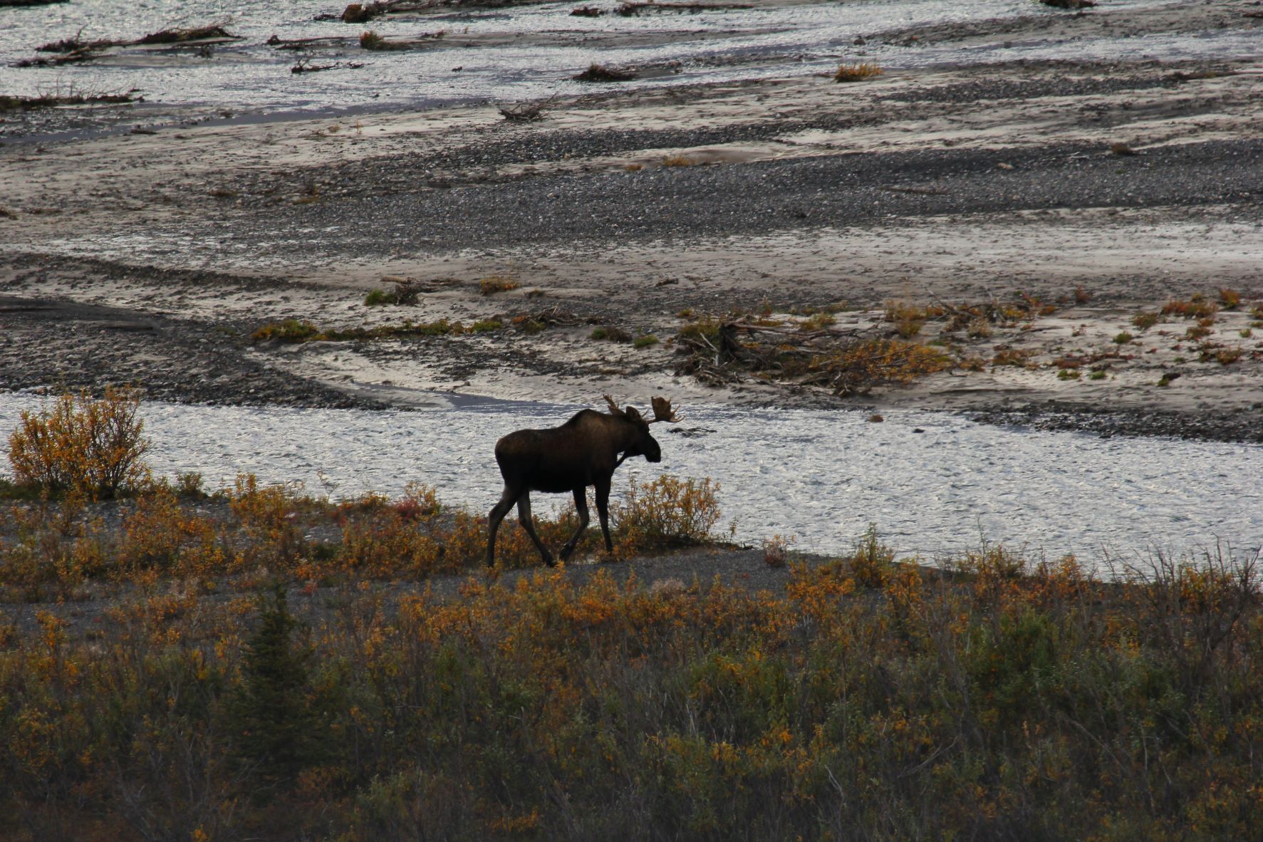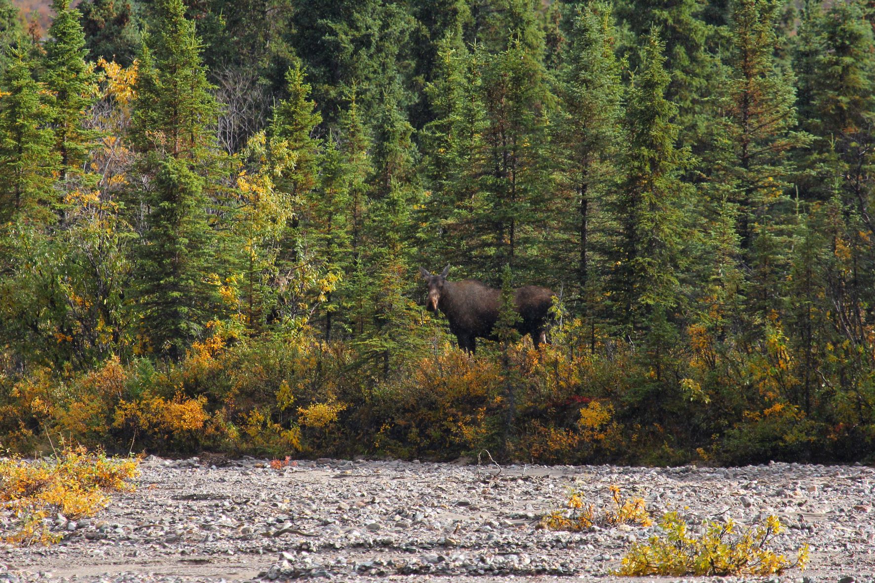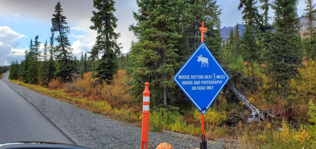 A few miles in, we came across a sign designating a 5-mile area where you needed to remain in your vehicle due to moose rutting. I have been wanting to see a bull moose in the wild for a long time. We briefly saw one from our cruise ship several years ago but it was really far away; a pinprick even with our giant camera lens. I didn’t realize we would be in Denali during moose rut, but if you want to increase your chances of seeing a moose, this is the time to go.