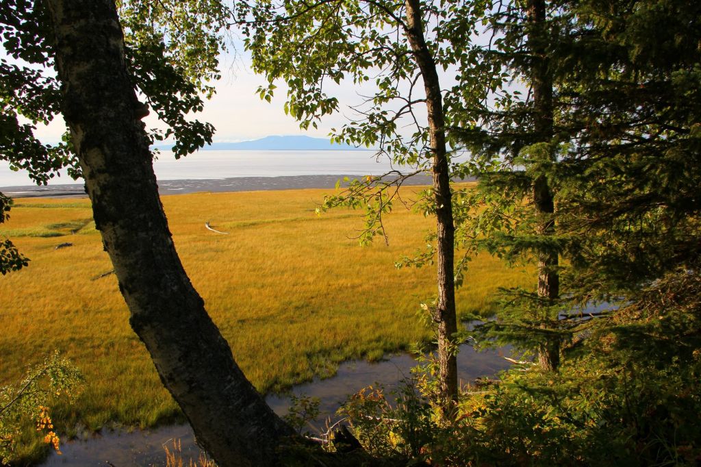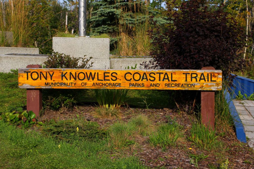 Tony Knowles Coastal Trail. We spent several hours walking the Tony Knowles Coastal Trail, starting by the Captain Cook monument. This paved trail along the coast had quite a few walkers and bikers and awesome views.