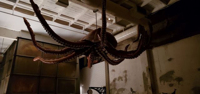 We wandered around the farmer’s market while we waited and before we knew it we were grabbing some stools along the outdoor bar and trying to split our attention between the amazing menu and the incredible decor. (Please note the giant eyeball in the picture below – it would blink and look around, which was both creepy and cool!)