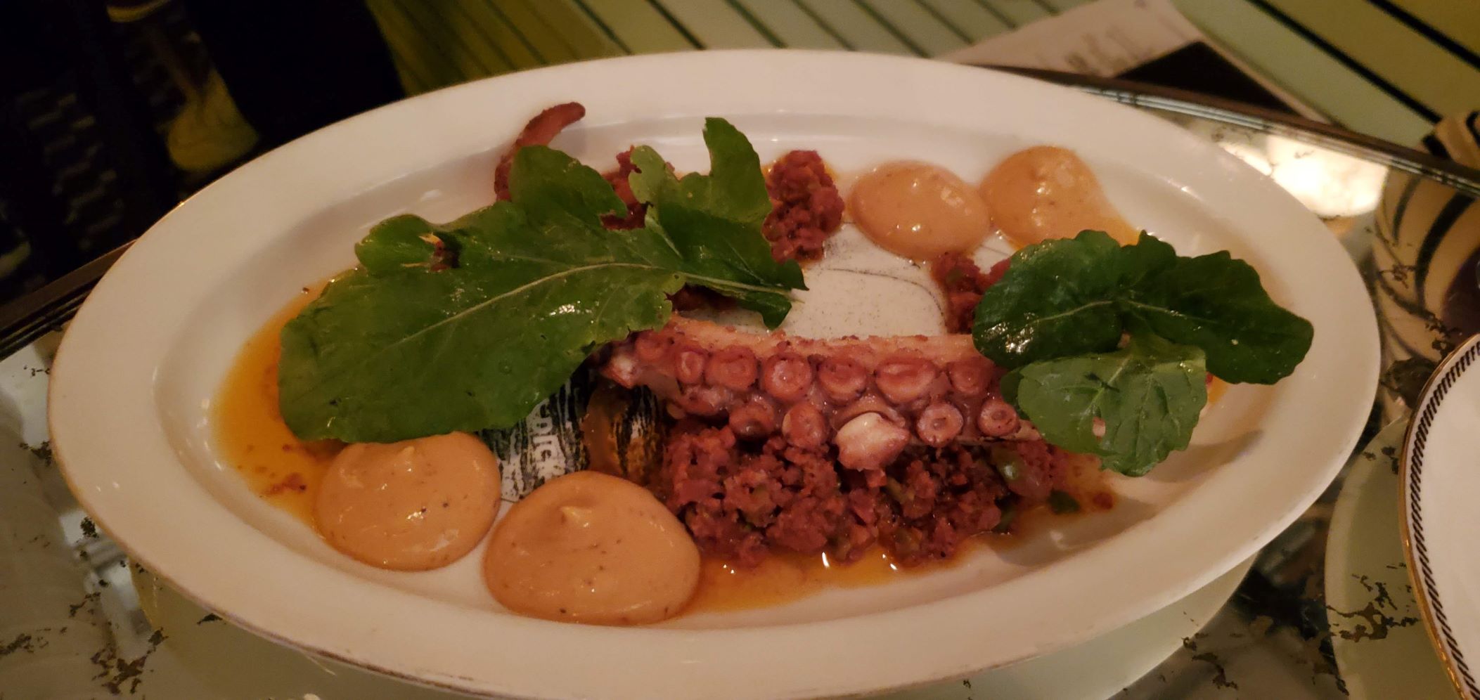 May I recommend the oysters in the half shell (duh), cucumber and melon salad (divine) and octopus a la plancha (delicious). So. Good.