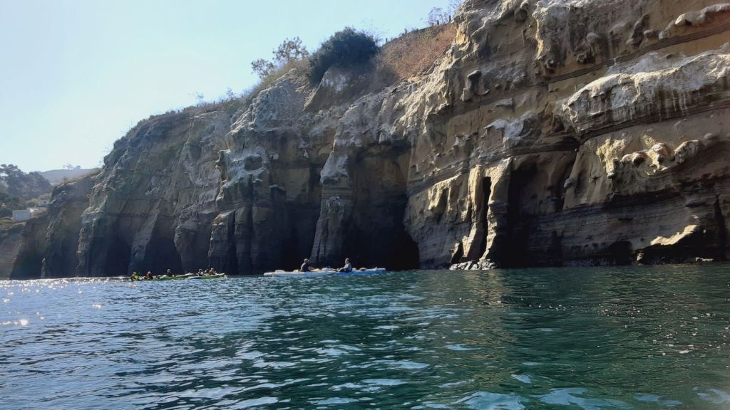 We used Everyday California to book a 90-minute morning kayak trip to the nearby sea caves. After checking in at their office in La Jolla Shores to get our equipment and leave our things in one of their lockers, we walked down to La Jolla Shores Beach. We had a little downtime as our group came together and the staff prepared our kayaks, but soon we were on our way.