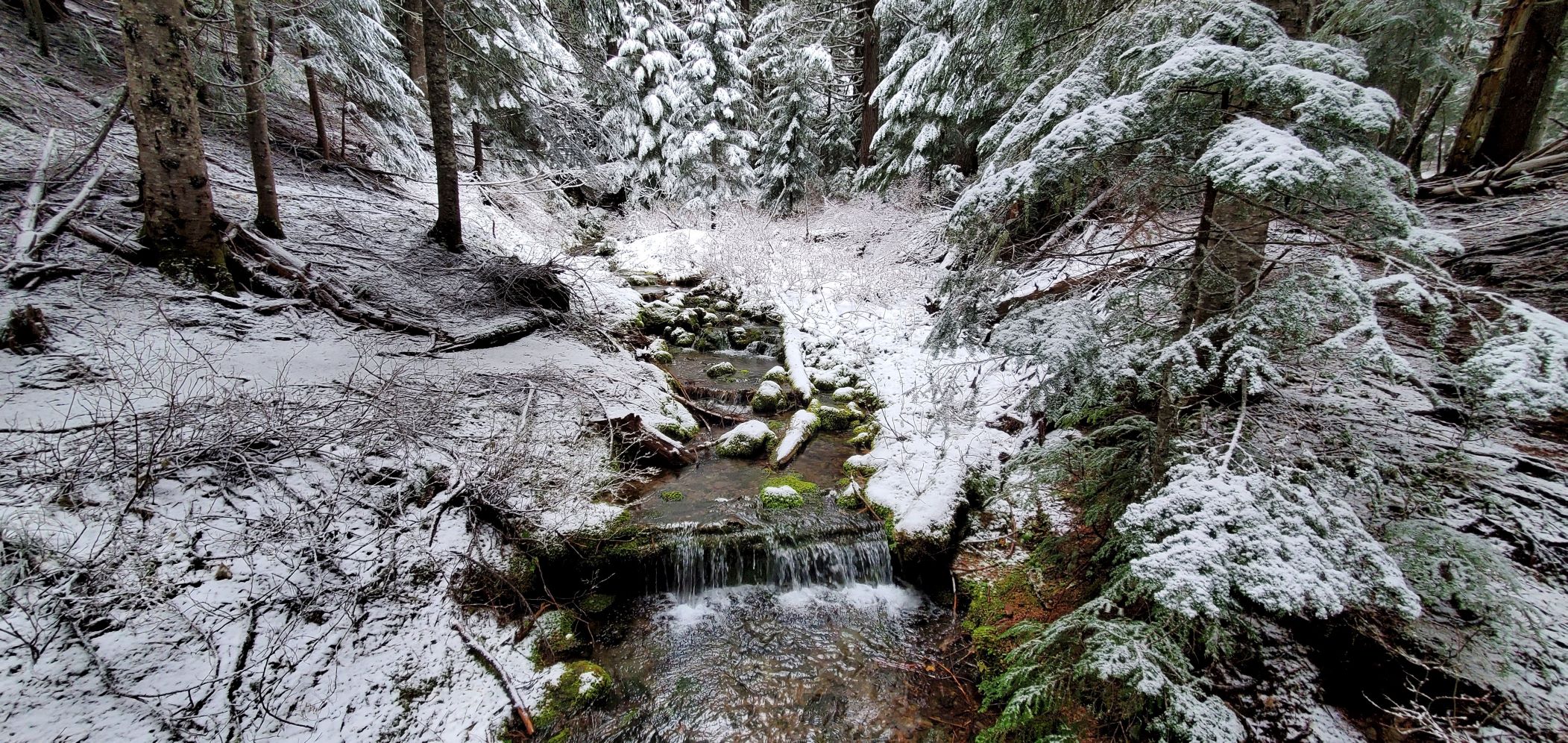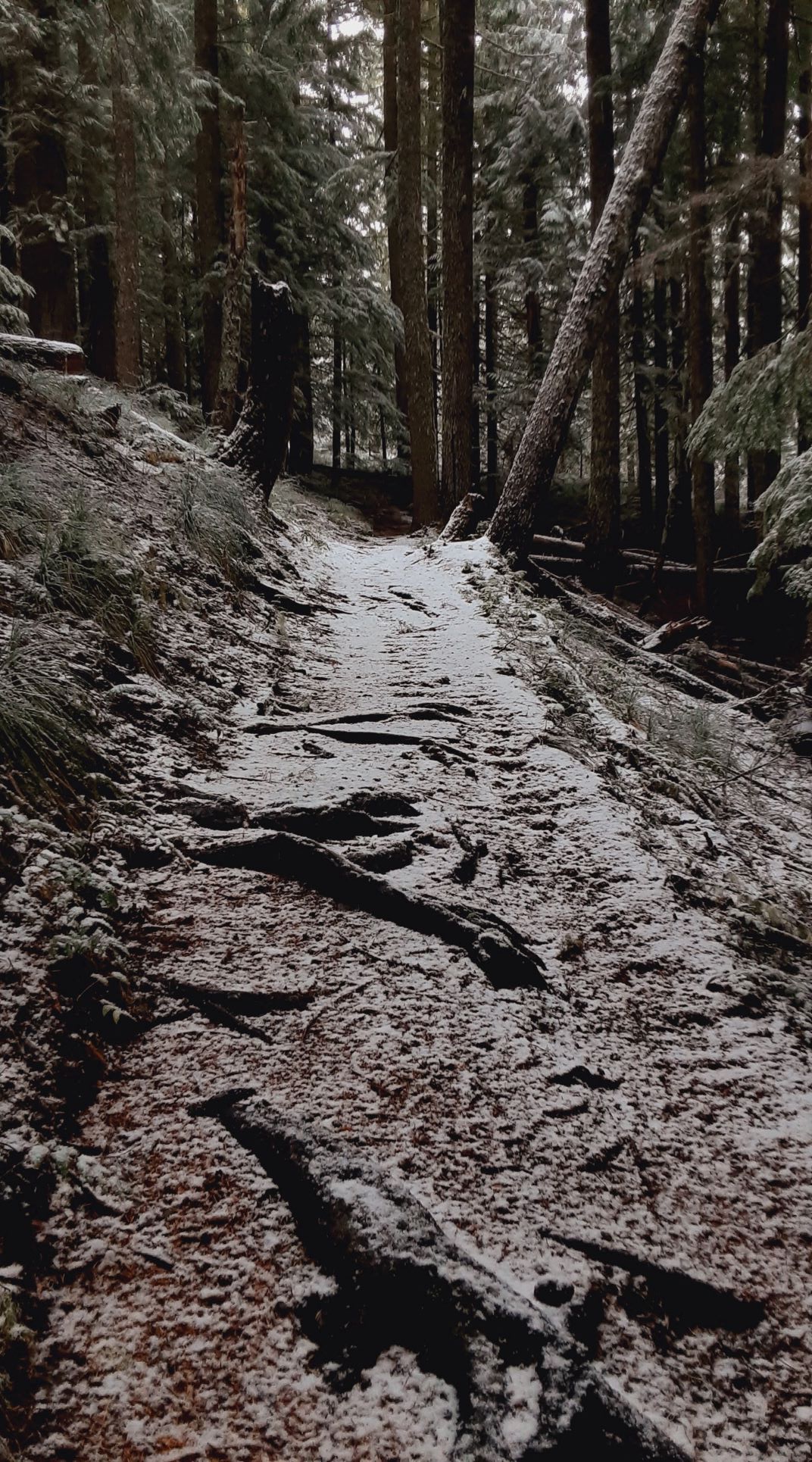 Not too far in we started to climb. As we gained elevation, we also watched the rain turn to snow.
