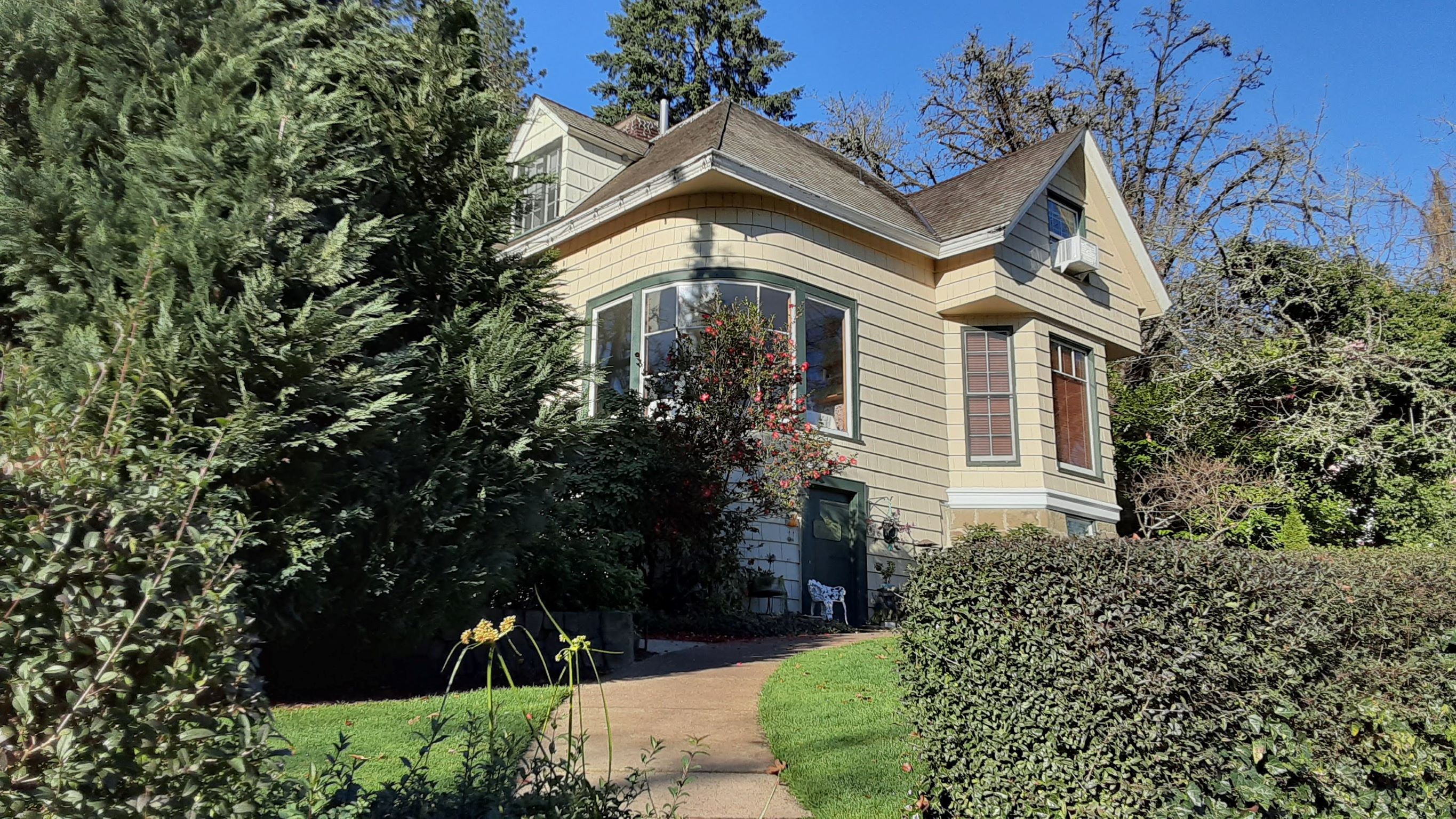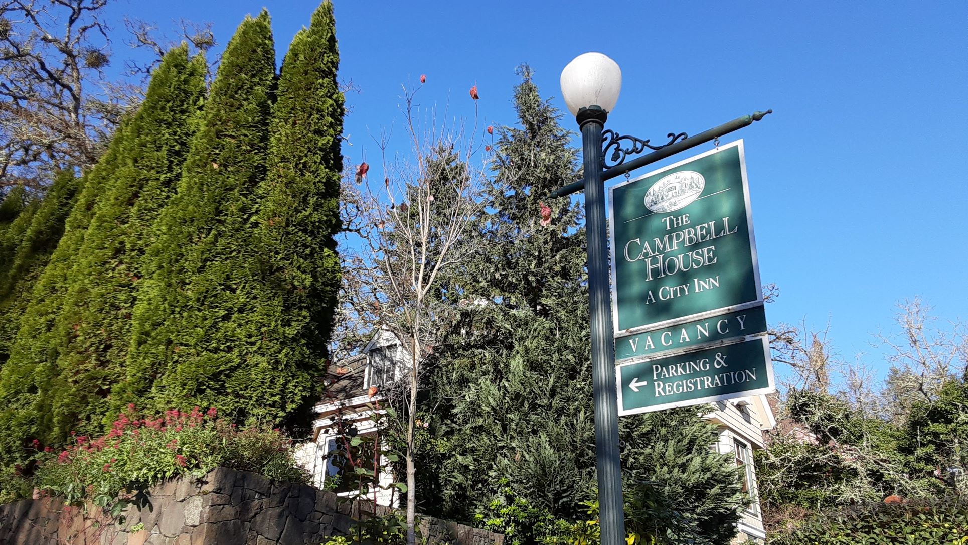 One of my splurges this trip was staying at the Campbell House Inn. Just a few blocks north of the train station, this lovely B&B had the perfect room for one – the Cogs room – with a writer’s nook overlooking the trees and garden where I spent the time I wasn’t exploring Eugene on foot writing blog posts on my new Surface Go.