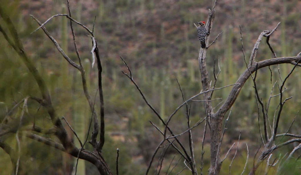 On our way back to the car, we spotted a bright red head through the trees – a Gila Woodpecker! – and I managed to snap one picture from far away just before it flew off.