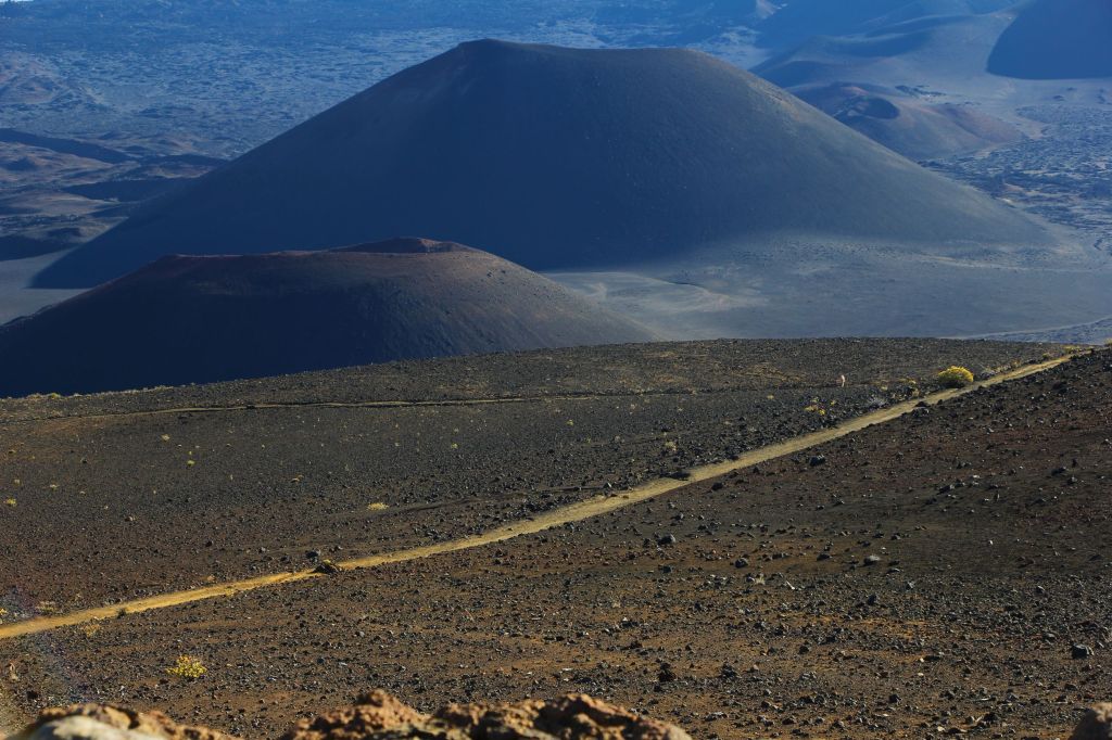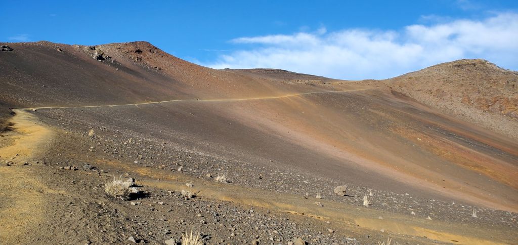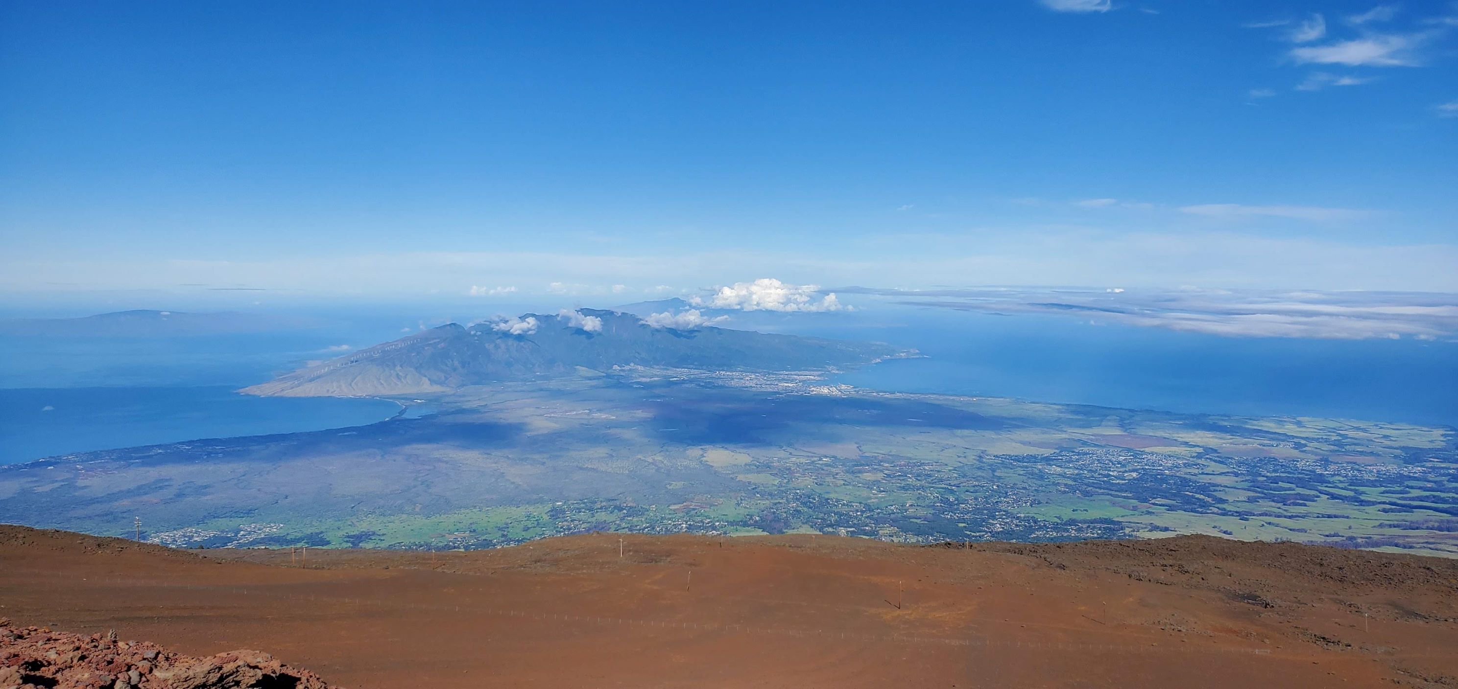Our last stop was Pu’u’ula’ula, which rises over the island of Maui at 10,023 feet. The observation building was closed, but we walked around it and over to the nearby red hill for incredible views over western Maui.