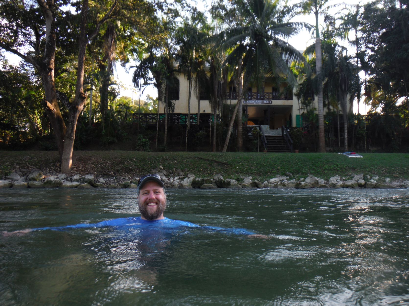If eating, drinking, sleeping, relaxing, meeting people, admiring the parrots, going on excursions, and wandering the grounds are not enough to occupy your time and attention, may I recommend joining the locals for a dip in the Mopan River, which literally runs through the hotel’s backyard.