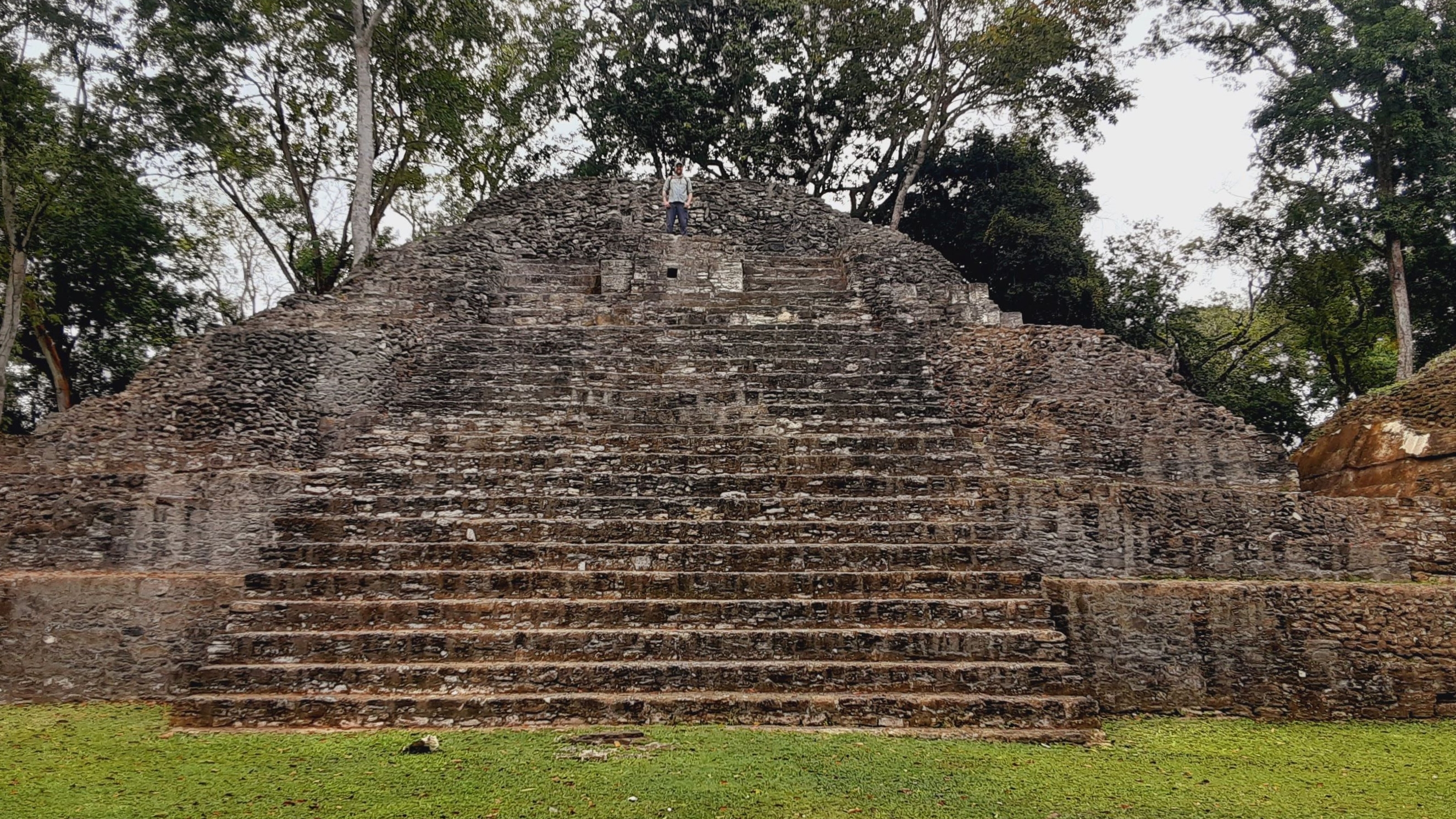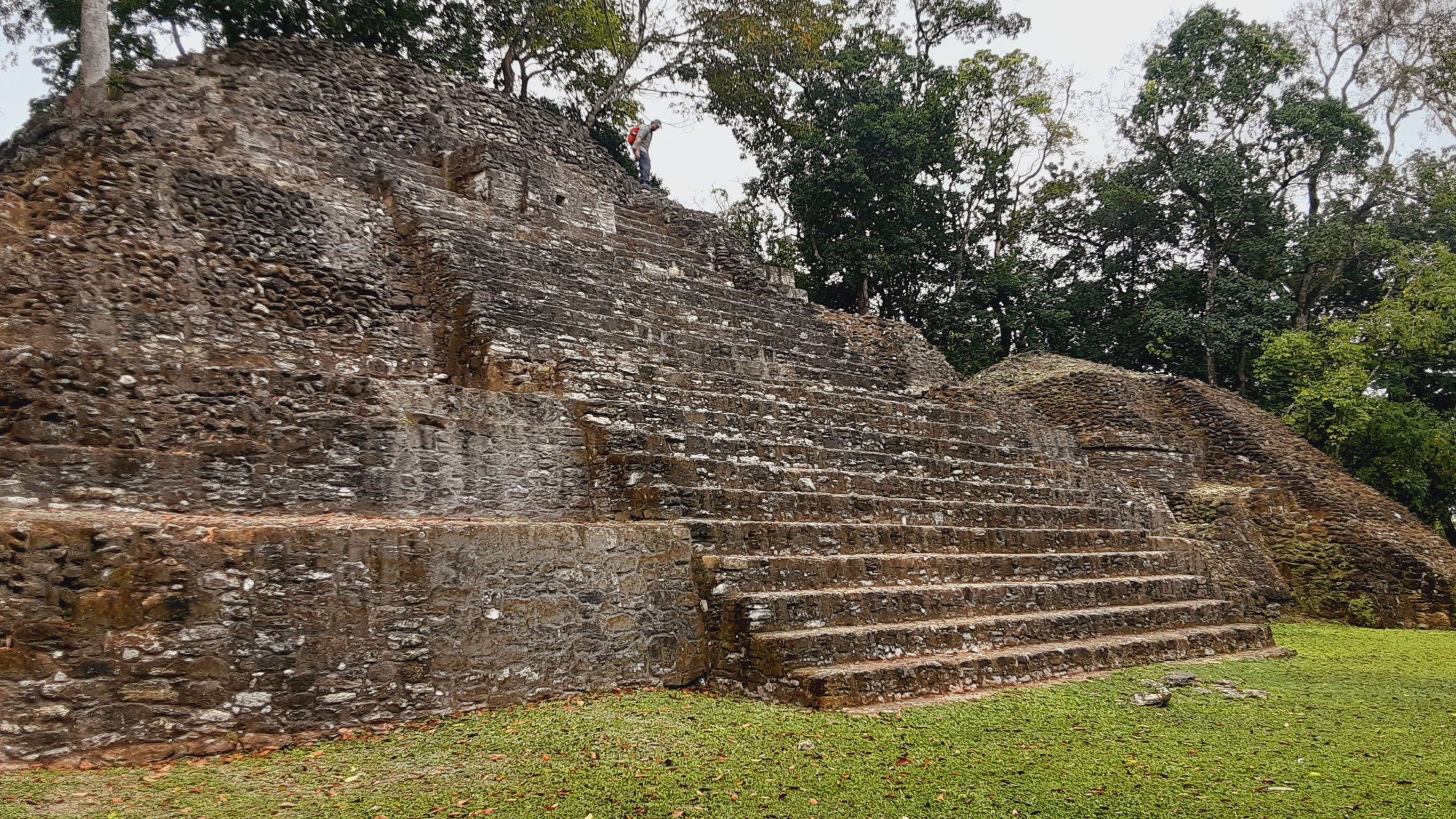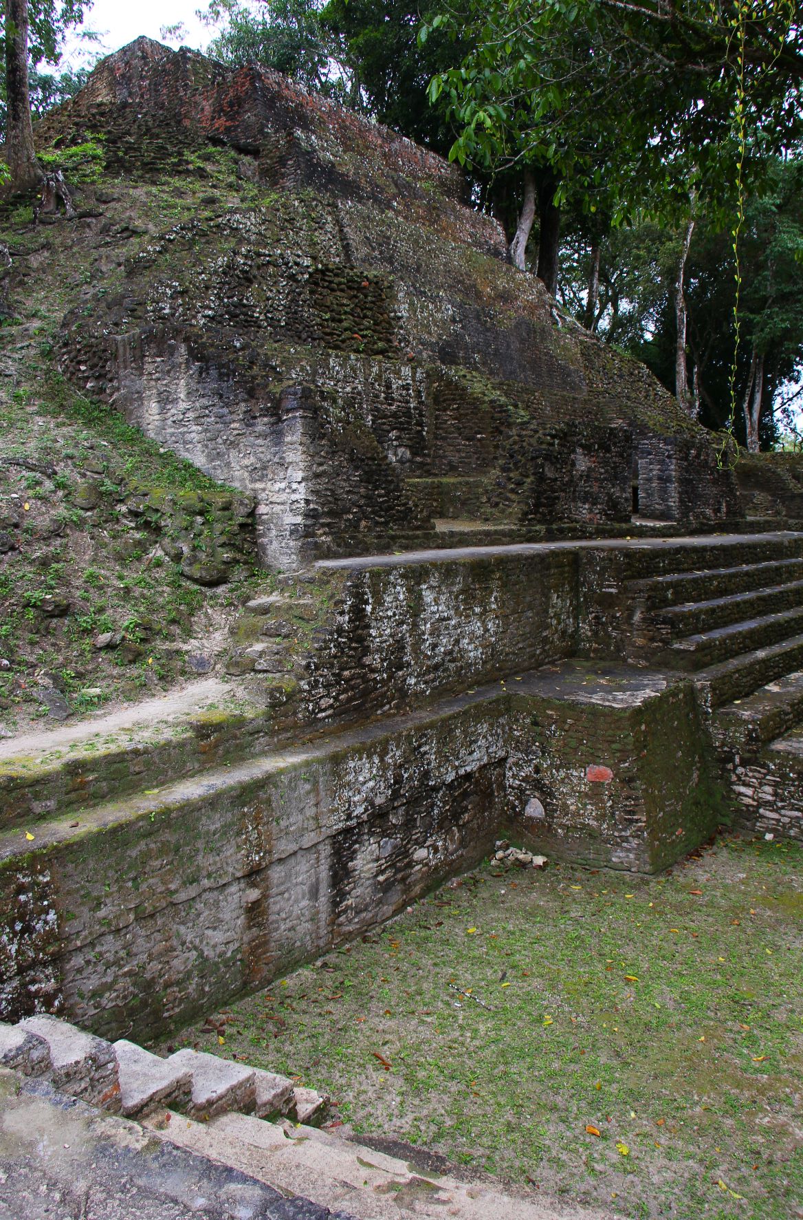 I was impressed with a couple of the larger multi-platform step-pyramids, both in the main plaza B where we saw the rats as well as in plaza A, where we climbed to the top of the largest one. The one in plaza B, featured below, is about 78 feet high. If you squint, you might spot Brian on the top of it!