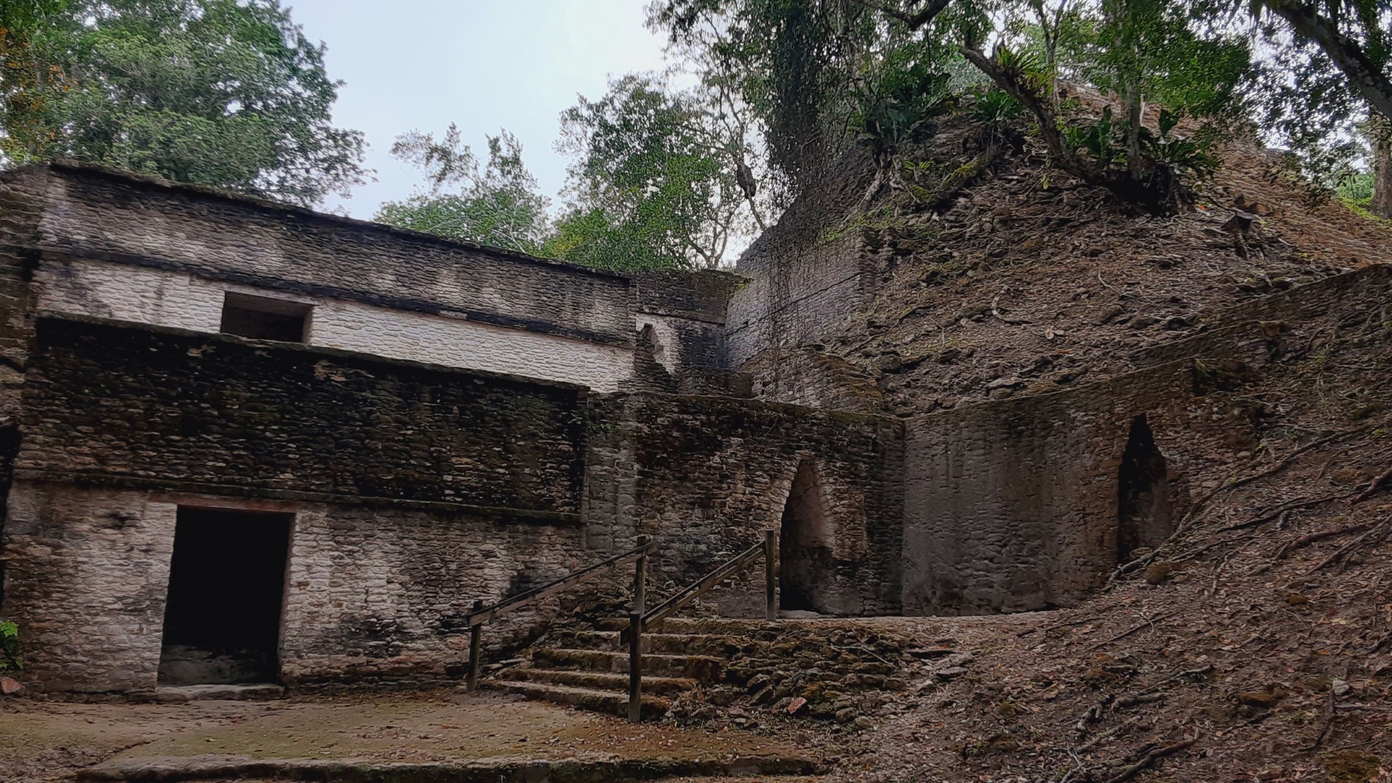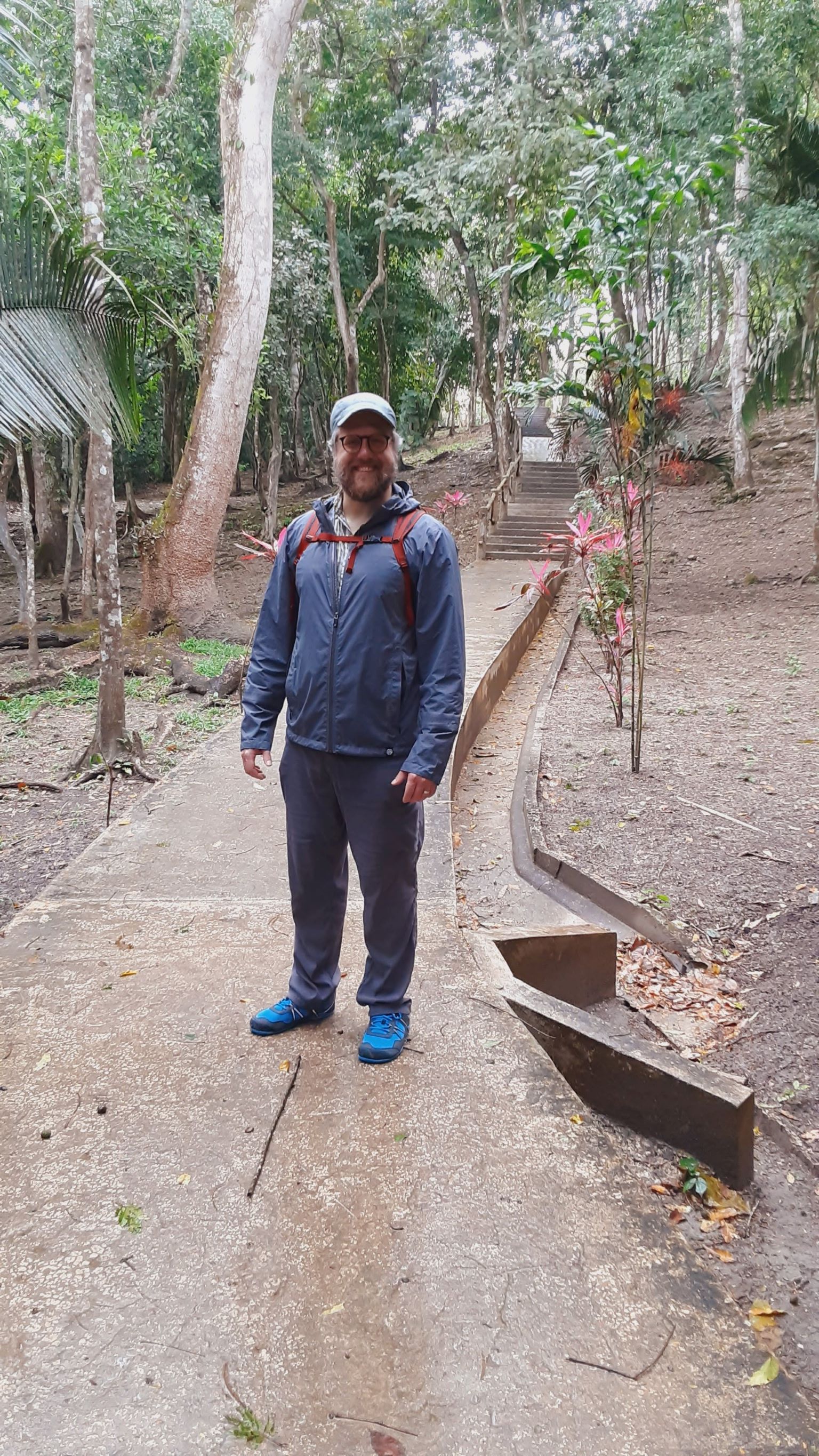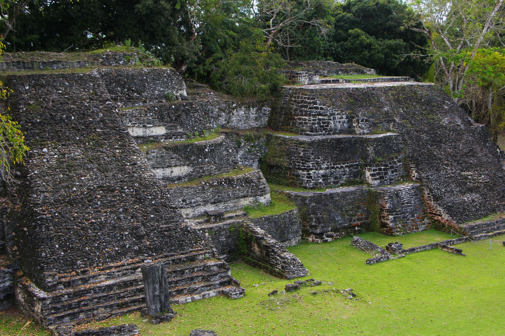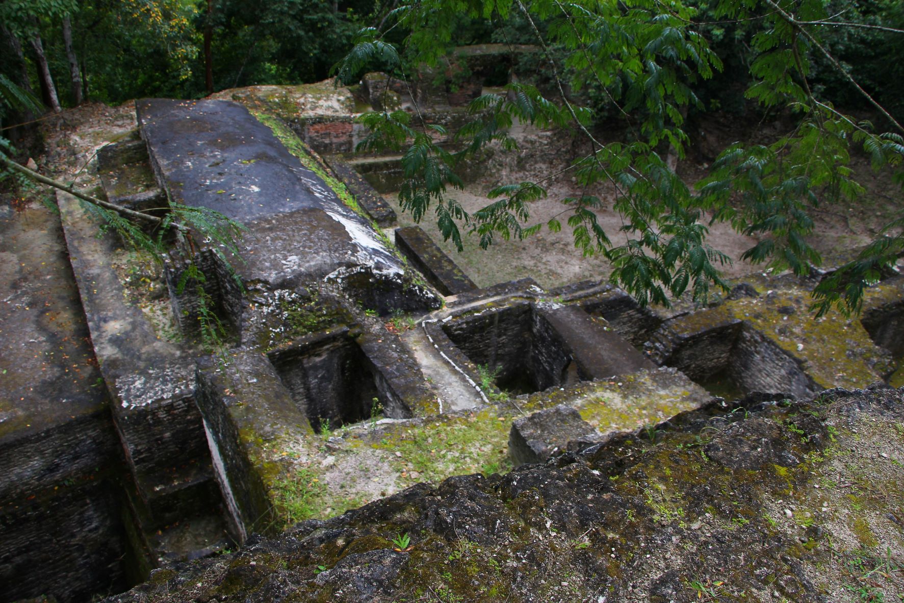 I was impressed with a couple of the larger multi-platform step-pyramids, both in the main plaza B where we saw the rats as well as in plaza A, where we climbed to the top of the largest one. The one in plaza B, featured below, is about 78 feet high. If you squint, you might spot Brian on the top of it!